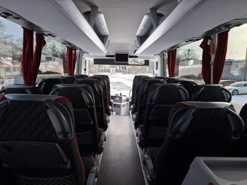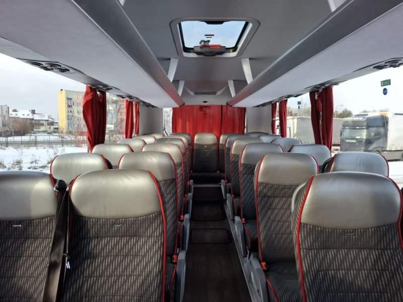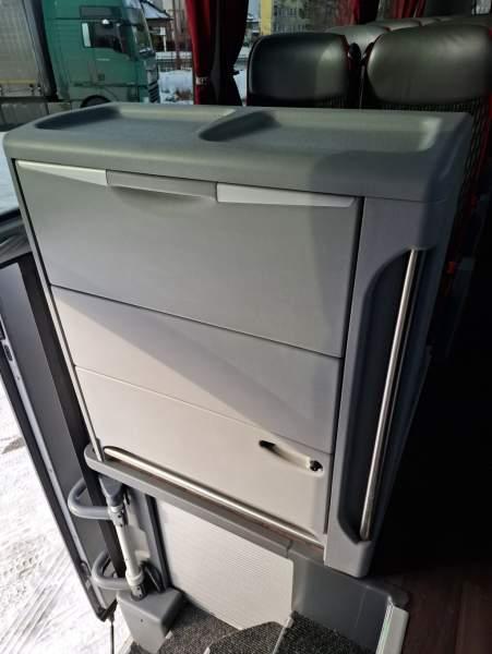 : WC, lodówka, caffebar, oświetlenie indywidualne, nawiewy dyszowe, siateczki, ABS, ASR, tempomat, retarder, nawigacja, CD, podnóżki, stoliczki, mikrofon, klimatyzacja, radio, sejf, regulacja wysokości nadwozia, centralny zamek, podwójne szyby boczne, wspomaganie kierownicy, elektryczne lusterka, fotele odchylane i rozsuwane, DVD, ogrzewanie stacjonarne, hak holowniczy, ESP