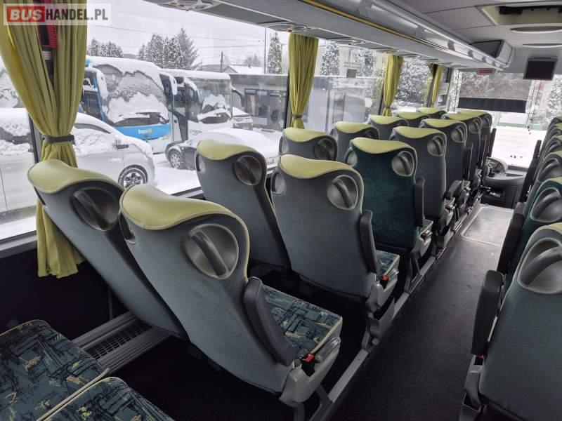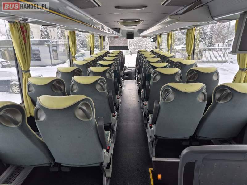 : video, lodówka, fotele odchylane, oświetlenie indywidualne, ABS, tempomat, retarder, CD, mikrofon, klimatyzacja, radio, regulacja wysokości nadwozia, centralny zamek, podwójne szyby boczne, wspomaganie kierownicy, elektryczne lusterka, DVD, ogrzewanie stacjonarne
