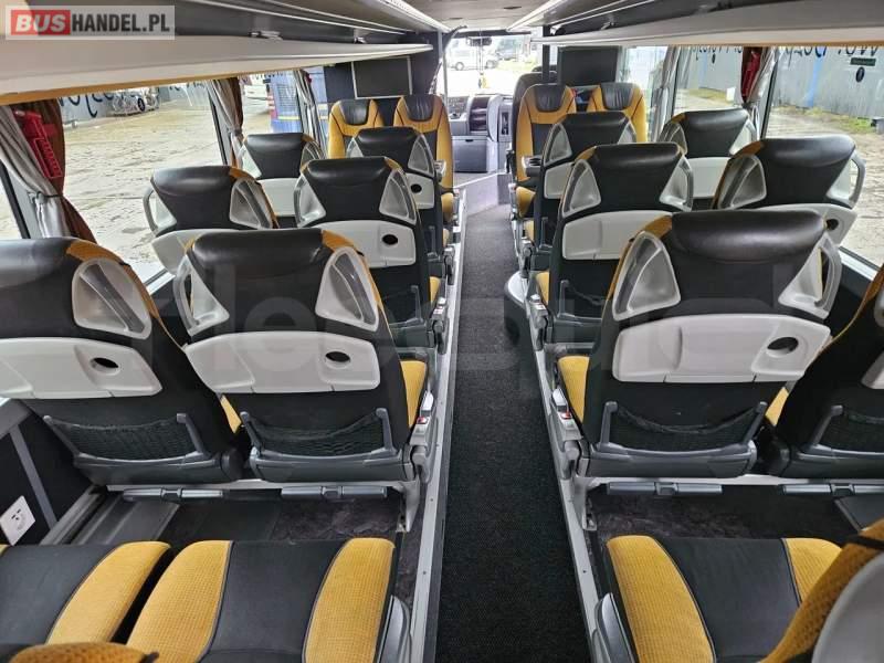 : WC, lodówka, fotele odchylane, ABS, ASR, retarder, CD, podnóżki, stoliczki, mikrofon, klimatyzacja, radio, fotele odchylane i rozsuwane, ogrzewanie stacjonarne