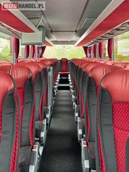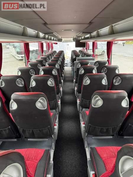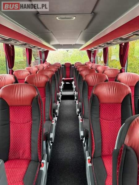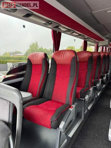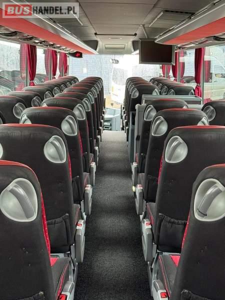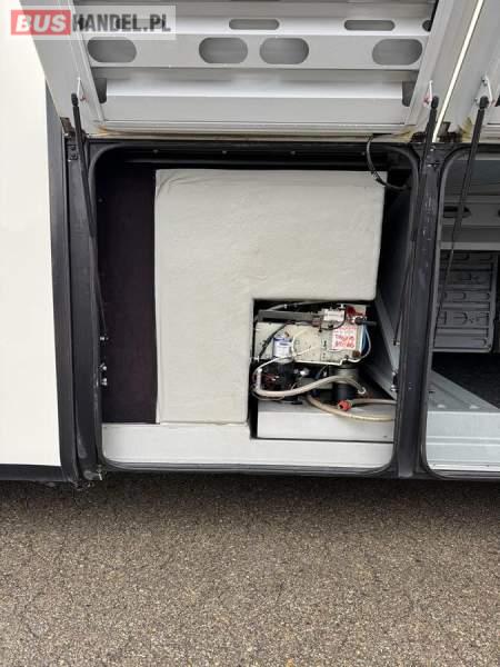 : lodówka, caffebar, kabina sypialna, oświetlenie indywidualne, nawiewy dyszowe, siateczki, ABS, ASR, tempomat, retarder, podnóżki, stoliczki, mikrofon, klimatyzacja, radio, sejf, regulacja wysokości nadwozia, centralny zamek, podwójne szyby boczne, wspomaganie kierownicy, elektryczne lusterka, fotele odchylane i rozsuwane, DVD, ogrzewanie stacjonarne, ESP