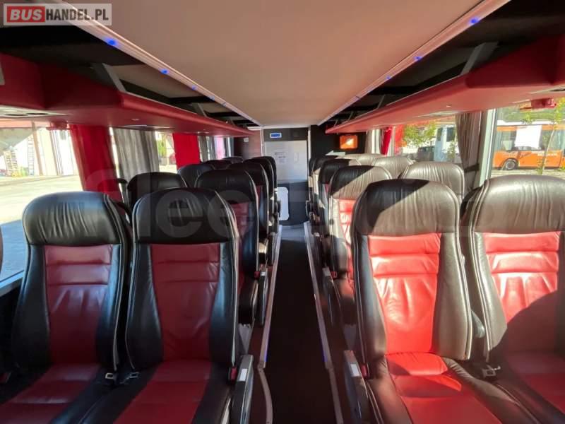 : WC, lodówka, fotele odchylane, ABS, ASR, retarder, CD, podnóżki, stoliczki, mikrofon, klimatyzacja, DVD, ogrzewanie stacjonarne