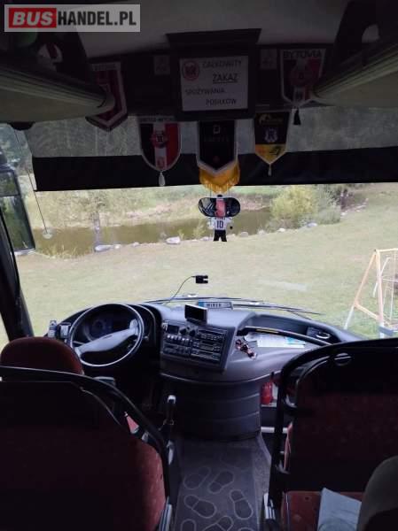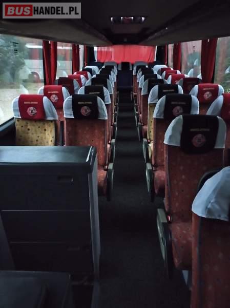 : WC, lodówka, caffebar, kabina sypialna, oświetlenie indywidualne, nawiewy dyszowe, ABS, ASR, tempomat, retarder, CD, stoliczki, mikrofon, klimatyzacja, radio, regulacja wysokości nadwozia, podwójne szyby boczne, wspomaganie kierownicy, elektryczne lusterka, fotele odchylane i rozsuwane, DVD, ogrzewanie stacjonarne, ESP
