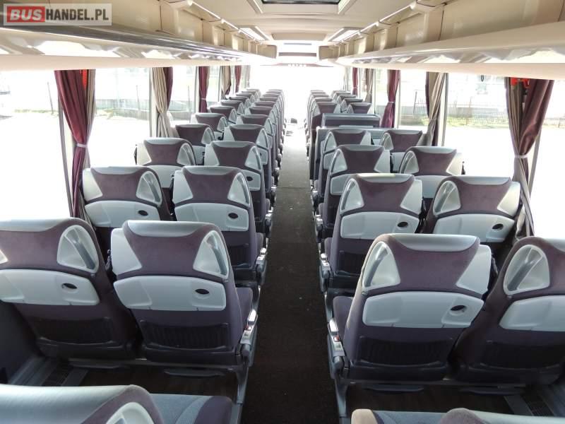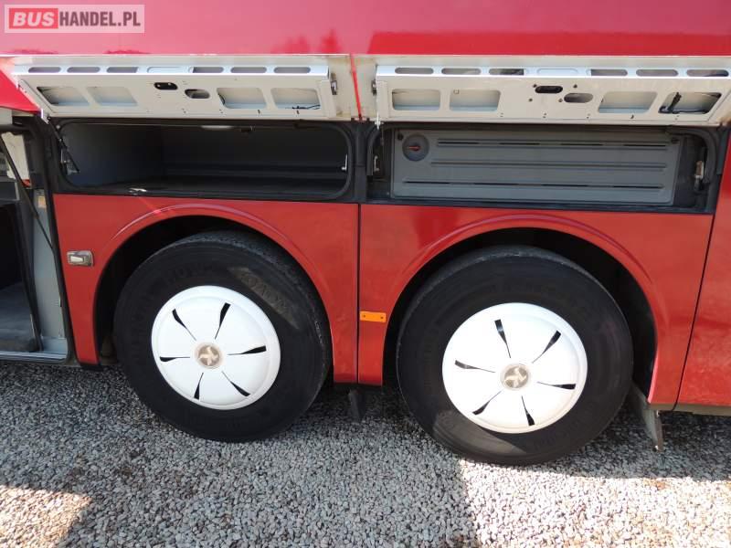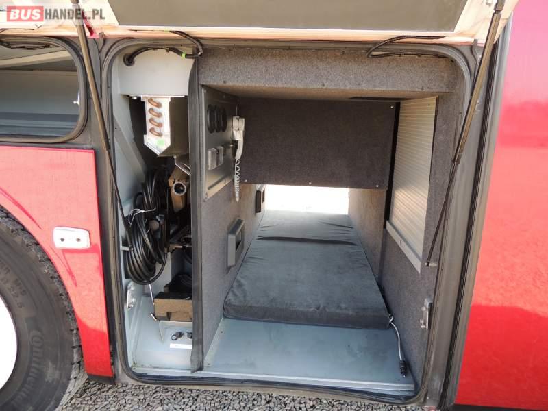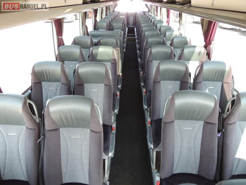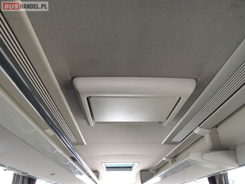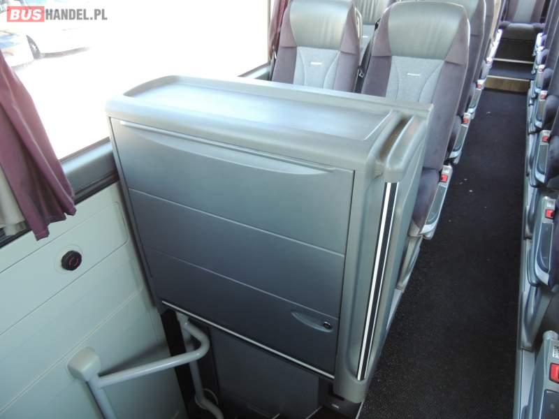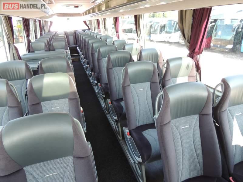 : video, WC, lodówka, caffebar, oświetlenie indywidualne, nawiewy dyszowe, siateczki, ABS, ASR, tempomat, retarder, CD, podnóżki, stoliczki, mikrofon, klimatyzacja, radio, regulacja wysokości nadwozia, centralny zamek, podwójne szyby boczne, wspomaganie kierownicy, elektryczne lusterka, fotele odchylane i rozsuwane, DVD, ogrzewanie stacjonarne, ESP
