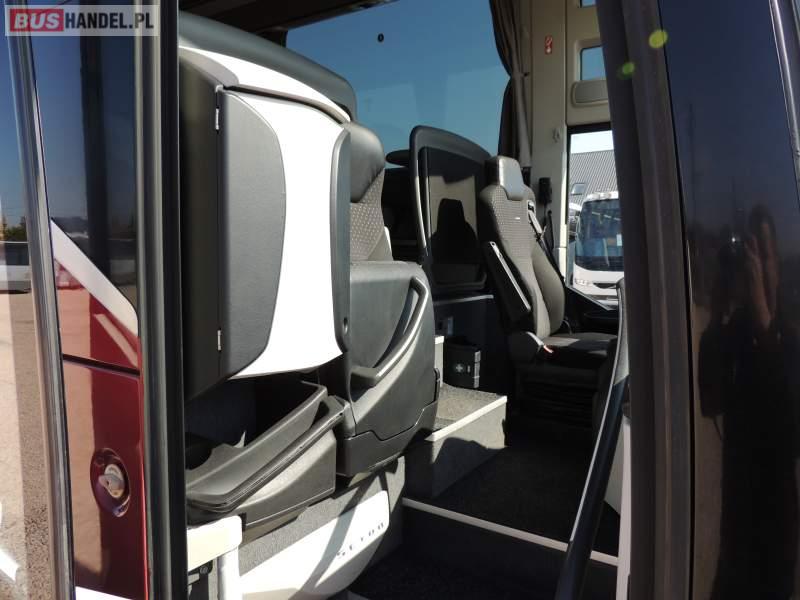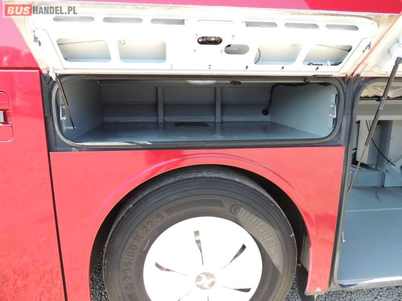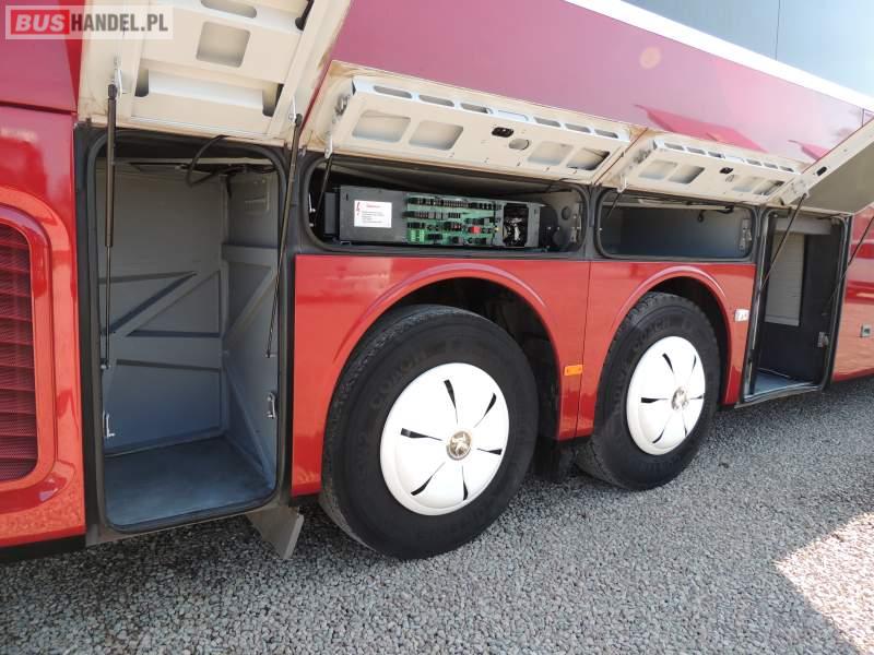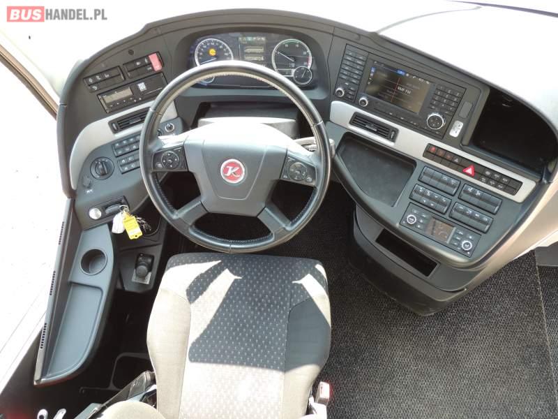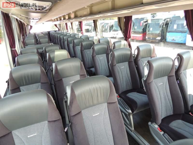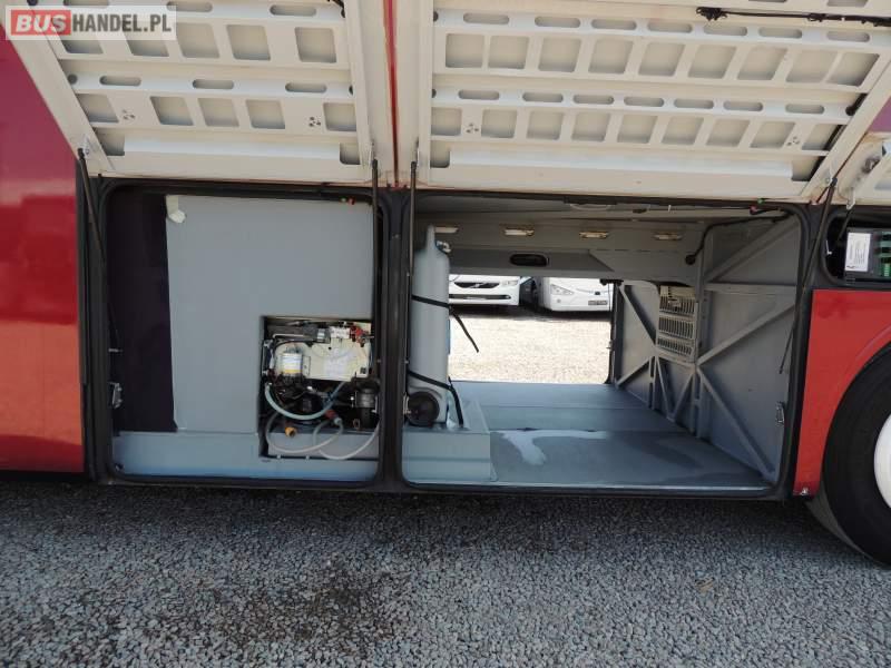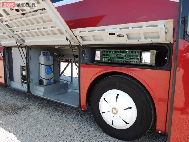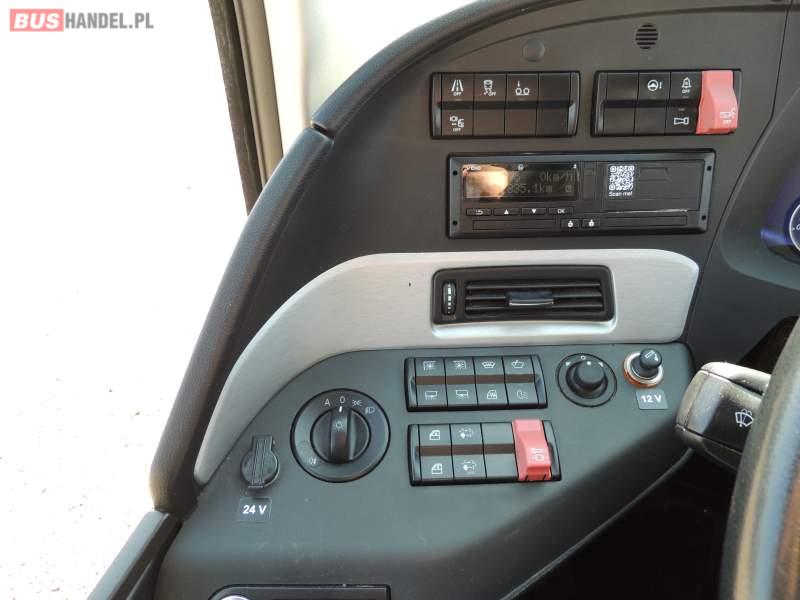 : video, WC, lodówka, caffebar, oświetlenie indywidualne, nawiewy dyszowe, siateczki, ABS, ASR, tempomat, retarder, CD, podnóżki, stoliczki, mikrofon, klimatyzacja, radio, regulacja wysokości nadwozia, centralny zamek, podwójne szyby boczne, wspomaganie kierownicy, elektryczne lusterka, fotele odchylane i rozsuwane, DVD, ogrzewanie stacjonarne, ESP