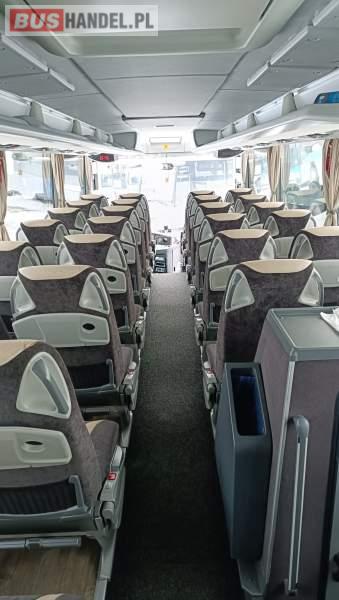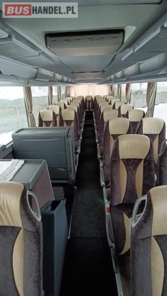 : WC, lodówka, oświetlenie indywidualne, nawiewy dyszowe, siateczki, ABS, ASR, tempomat, retarder, podnóżki, stoliczki, mikrofon, klimatyzacja, radio, sejf, regulacja wysokości nadwozia, centralny zamek, podwójne szyby boczne, wspomaganie kierownicy, elektryczne lusterka, fotele odchylane i rozsuwane, DVD, ogrzewanie stacjonarne, ESP