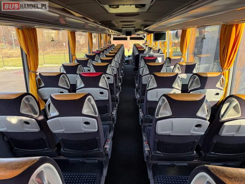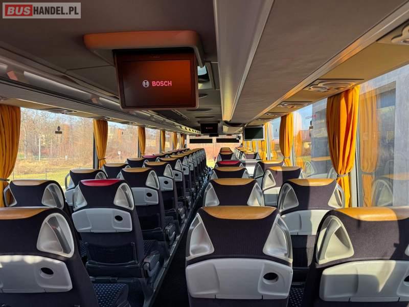 : video, WC, lodówka, fotele odchylane, oświetlenie indywidualne, nawiewy dyszowe, siateczki, ABS, ASR, tempomat, retarder, telefon, CD, podnóżki, stoliczki, mikrofon, klimatyzacja, radio, regulacja wysokości nadwozia, centralny zamek, podwójne szyby boczne, wspomaganie kierownicy, elektryczne lusterka, fotele odchylane i rozsuwane, DVD, ogrzewanie stacjonarne, hak holowniczy, ESP