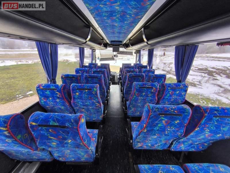 : video, lodówka, fotele odchylane, oświetlenie indywidualne, nawiewy dyszowe, ABS, retarder, CD, podnóżki, mikrofon, klimatyzacja, radio, regulacja wysokości nadwozia, podwójne szyby boczne, wspomaganie kierownicy, elektryczne lusterka