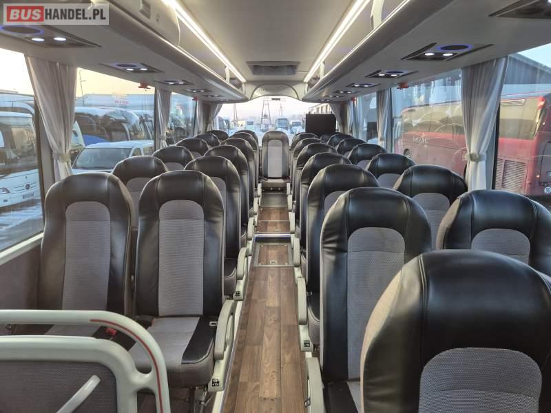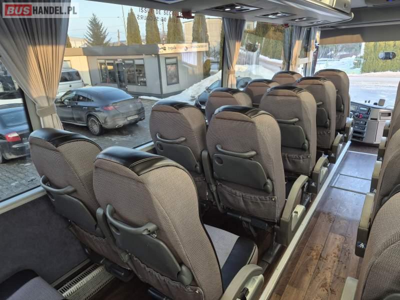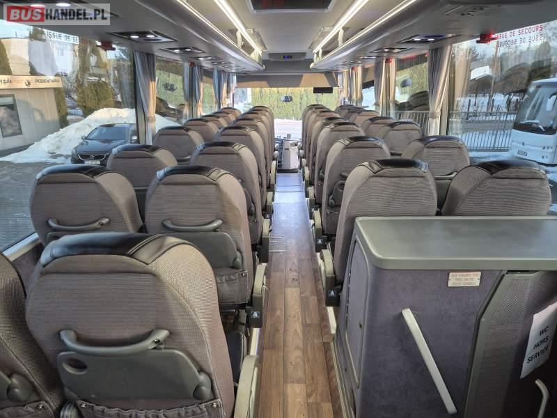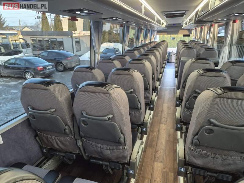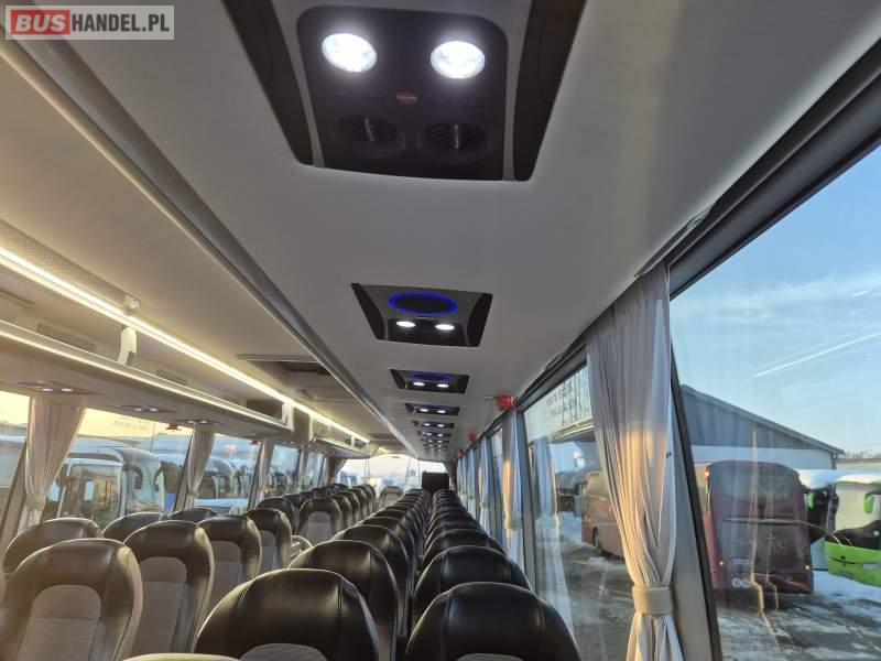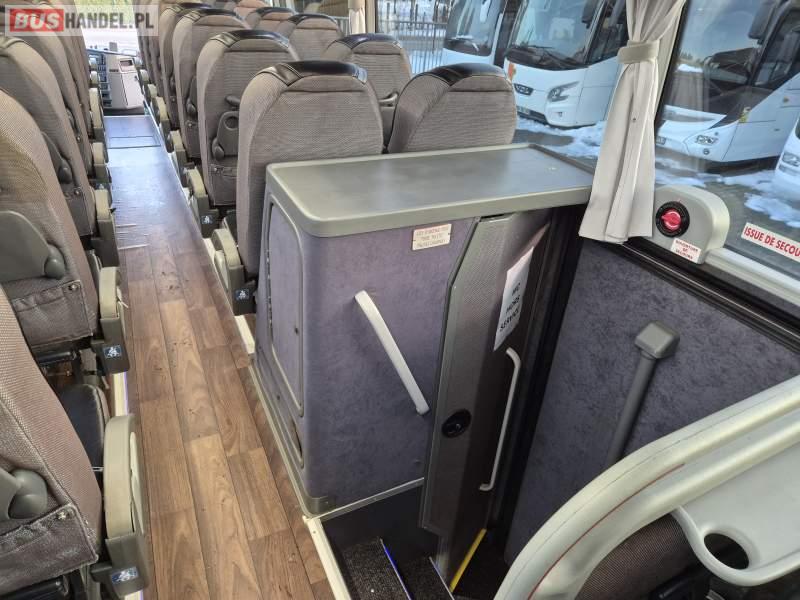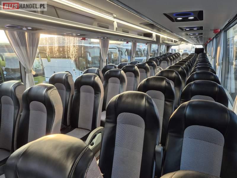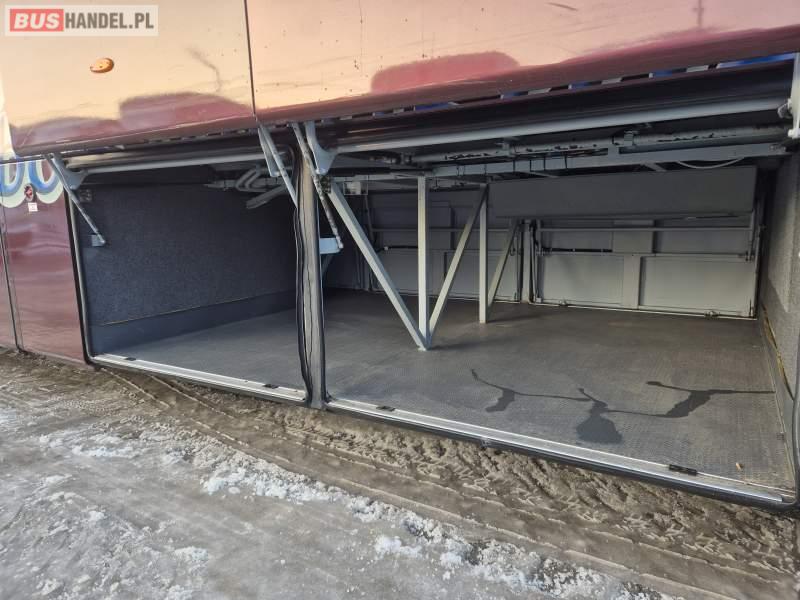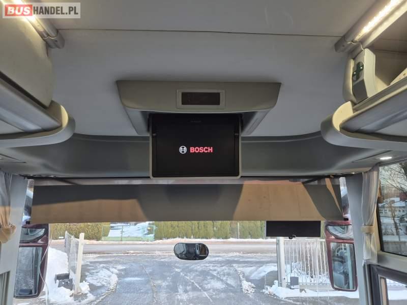: video, WC, lodówka, kabina sypialna, fotele odchylane, oświetlenie indywidualne, siateczki, ABS, tempomat, retarder, CD, podnóżki, stoliczki, mikrofon, klimatyzacja, radio, regulacja wysokości nadwozia, centralny zamek, podwójne szyby boczne, wspomaganie kierownicy, elektryczne lusterka, DVD, ogrzewanie stacjonarne