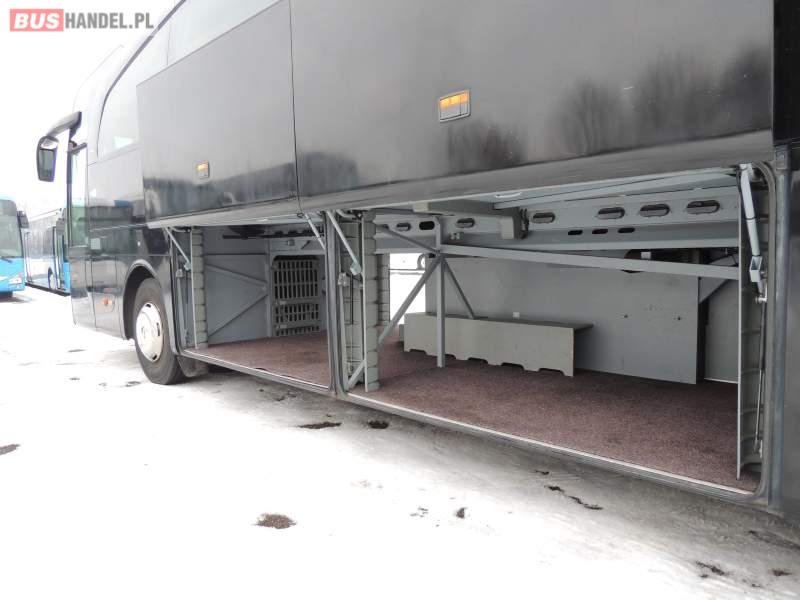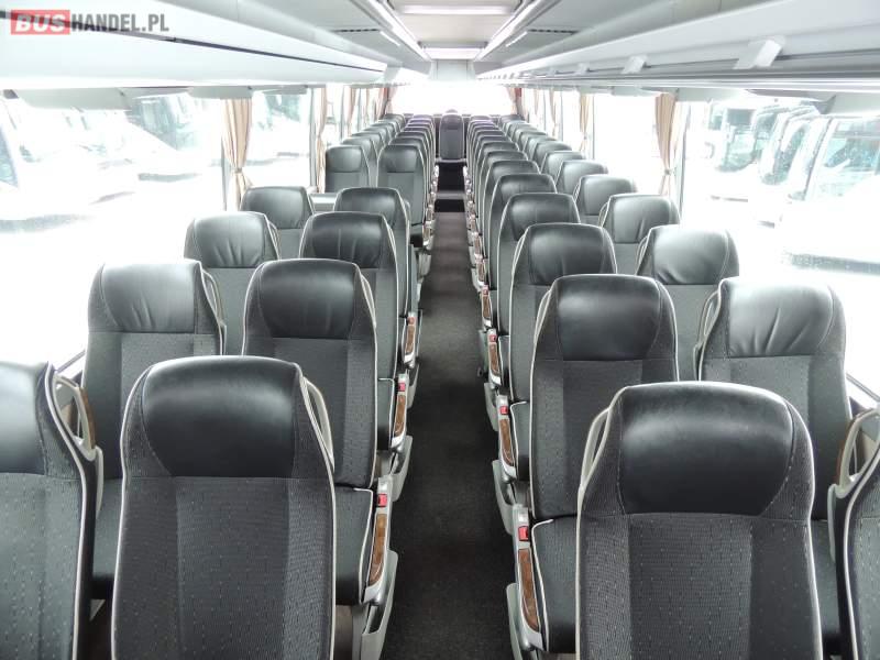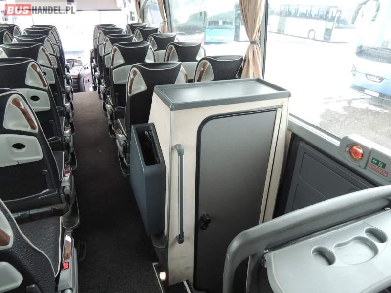 : video, WC, lodówka, oświetlenie indywidualne, nawiewy dyszowe, ABS, ASR, tempomat, retarder, CD, podnóżki, klimatyzacja, radio, regulacja wysokości nadwozia, centralny zamek, podwójne szyby boczne, wspomaganie kierownicy, elektryczne lusterka, fotele odchylane i rozsuwane, DVD, ogrzewanie stacjonarne, ESP