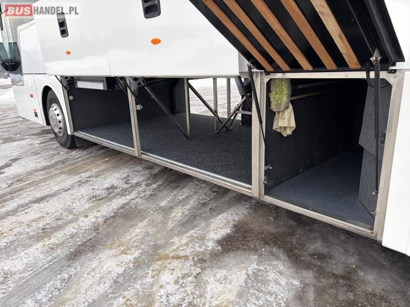 : lodówka, fotele odchylane, oświetlenie indywidualne, nawiewy dyszowe, ABS, ASR, retarder, CD, podnóżki, mikrofon, klimatyzacja, radio, regulacja wysokości nadwozia, podwójne szyby boczne, wspomaganie kierownicy, elektryczne lusterka, DVD, ogrzewanie stacjonarne, ESP