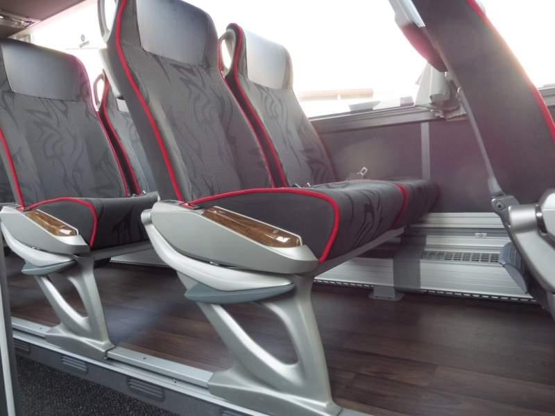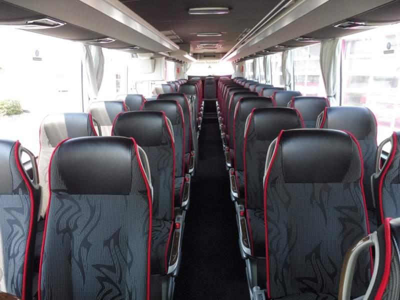 : WC, lodówka, caffebar, oświetlenie indywidualne, nawiewy dyszowe, siateczki, ABS, ASR, tempomat, retarder, nawigacja, CD, podnóżki, stoliczki, mikrofon, klimatyzacja, radio, regulacja wysokości nadwozia, centralny zamek, podwójne szyby boczne, wspomaganie kierownicy, elektryczne lusterka, fotele odchylane i rozsuwane, DVD, ogrzewanie stacjonarne, ESP