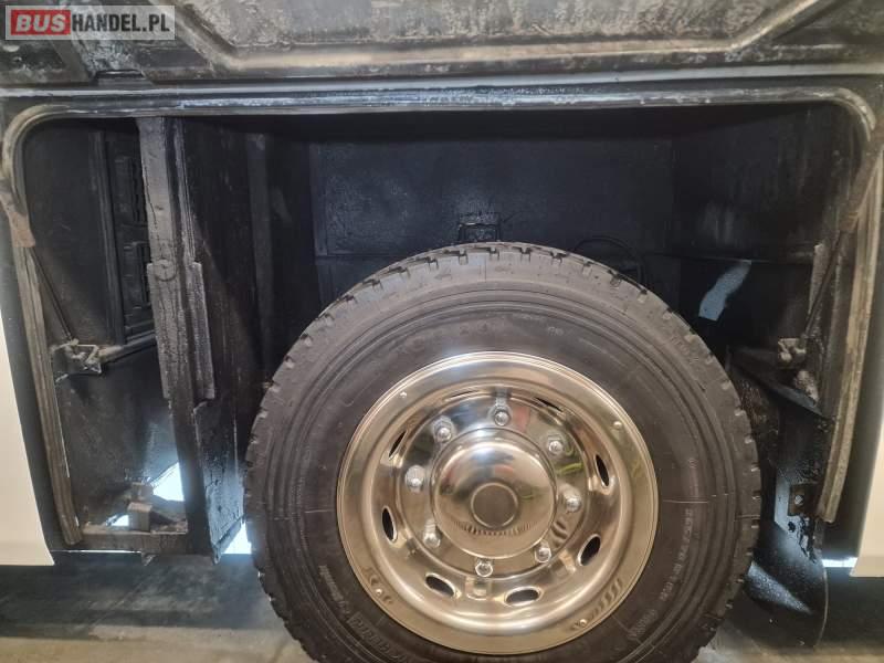 : video, lodówka, oświetlenie indywidualne, nawiewy dyszowe, ABS, tempomat, retarder, telefon, CD, mikrofon, klimatyzacja, radio, regulacja wysokości nadwozia, podwójne szyby boczne, elektryczne lusterka, fotele odchylane i rozsuwane, ogrzewanie stacjonarne