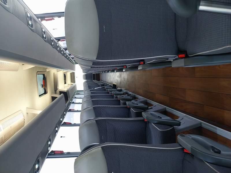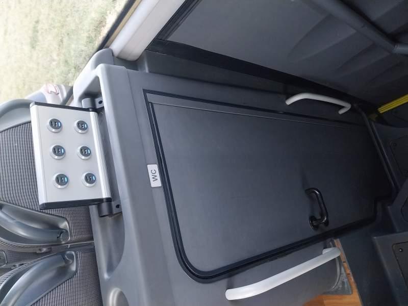 : klimatyzacja, WC, lodówka, caffebar, kabina sypialna, oświetlenie indywidualne, nawiewy dyszowe, fotele odchylane, podnóżki, stoliczki, siateczki, ABS, ASR, tempomat, retarder, nawigacja, CD, mikrofon, radio, regulacja wysokości nadwozia, centralny zamek, podwójne szyby boczne, wspomaganie kierownicy, elektryczne lusterka, ogrzewanie stacjonarne, DVD, ESP