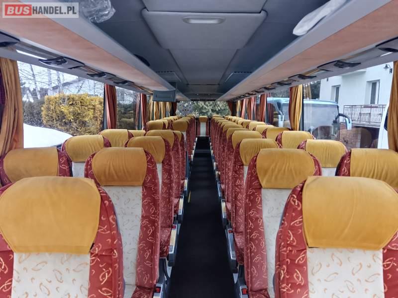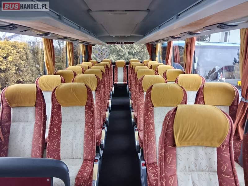 : klimatyzacja, video, WC, lodówka, kabina sypialna, oświetlenie indywidualne, podnóżki, stoliczki, siateczki, ABS, ASR, tempomat, retarder, CD, mikrofon, radio, fotele odchylane i rozsuwane, rampa dla inwalidów, sejf, centralny zamek, podwójne szyby boczne, wspomaganie kierownicy, elektryczne lusterka, ogrzewanie stacjonarne, DVD, ESP