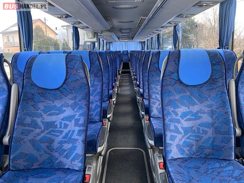 : video, WC, lodówka, caffebar, kabina sypialna, oświetlenie indywidualne, nawiewy dyszowe, siateczki, ABS, ASR, tempomat, retarder, CD, podnóżki, stoliczki, mikrofon, klimatyzacja, radio, regulacja wysokości nadwozia, centralny zamek, podwójne szyby boczne, wspomaganie kierownicy, elektryczne lusterka, aluminiowe felgi, fotele odchylane i rozsuwane, DVD, ogrzewanie stacjonarne, ESP