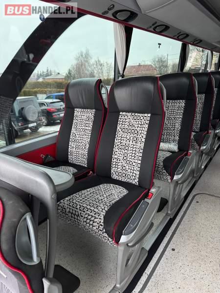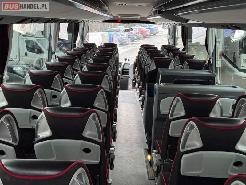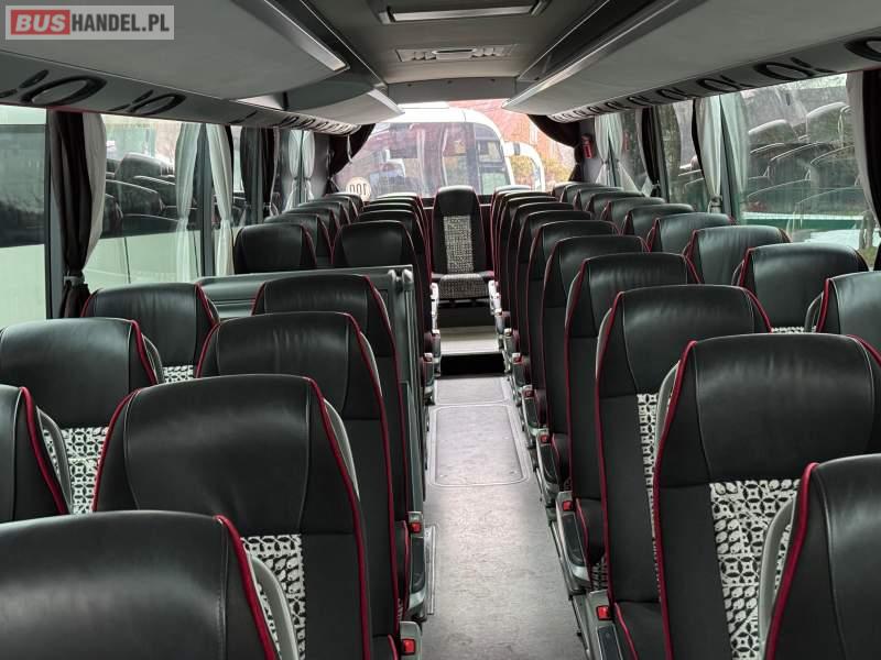 : WC, lodówka, caffebar, kabina sypialna, oświetlenie indywidualne, nawiewy dyszowe, siateczki, ABS, ASR, tempomat, retarder, podnóżki, stoliczki, mikrofon, klimatyzacja, radio, regulacja wysokości nadwozia, centralny zamek, podwójne szyby boczne, wspomaganie kierownicy, elektryczne lusterka, fotele odchylane i rozsuwane, DVD, ogrzewanie stacjonarne, ESP