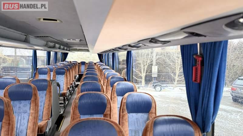 : WC, lodówka, caffebar, kabina sypialna, fotele odchylane, oświetlenie indywidualne, nawiewy dyszowe, siateczki, ABS, ASR, tempomat, retarder, podnóżki, stoliczki, mikrofon, klimatyzacja, radio, regulacja wysokości nadwozia, centralny zamek, podwójne szyby boczne, wspomaganie kierownicy, elektryczne lusterka, DVD, ogrzewanie stacjonarne, ESP
