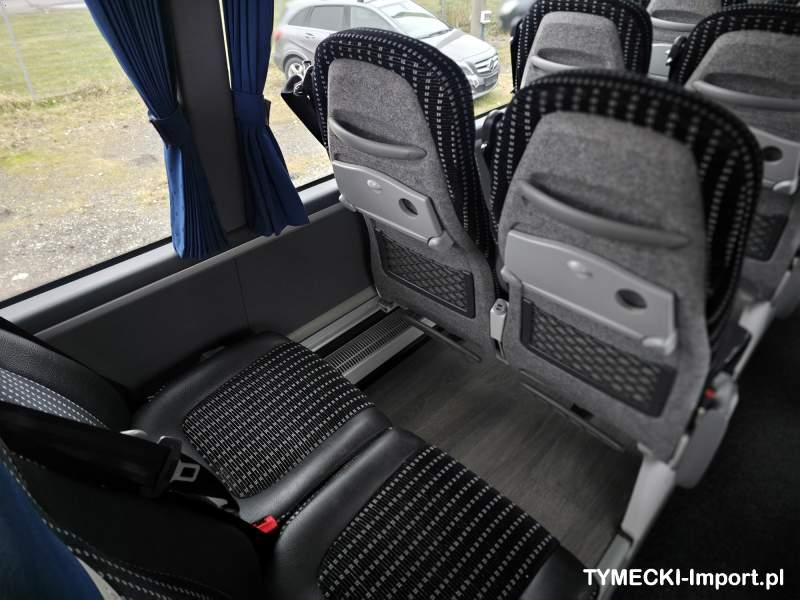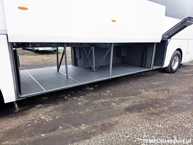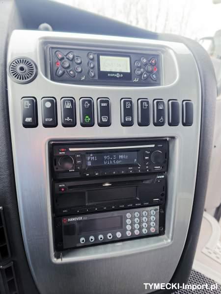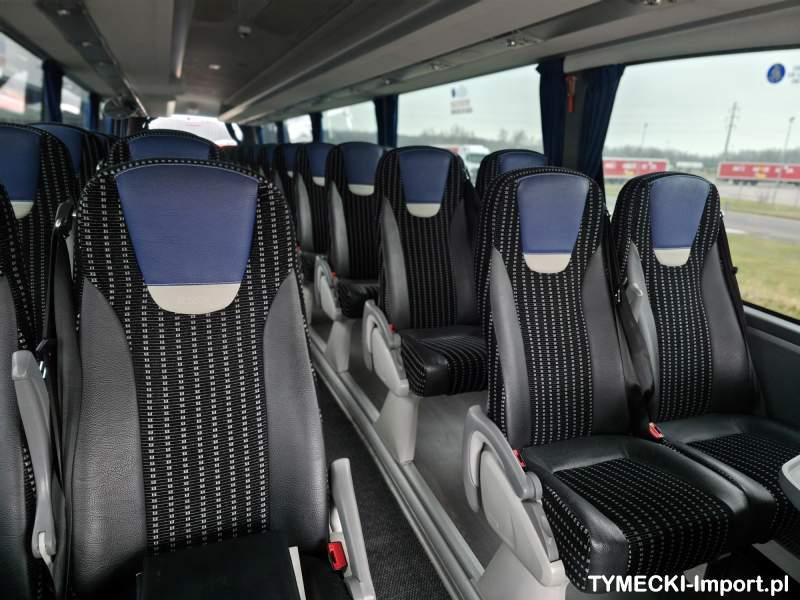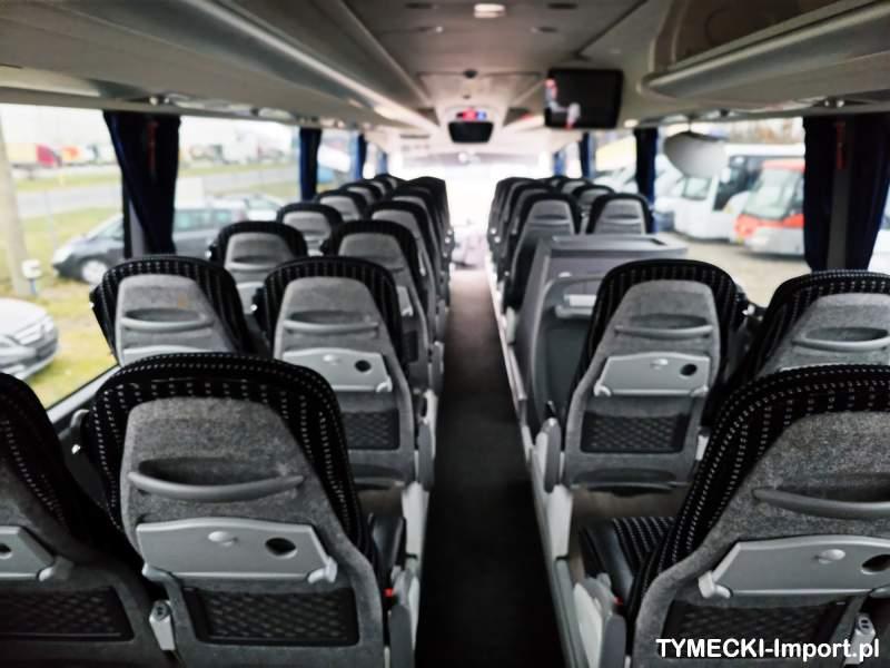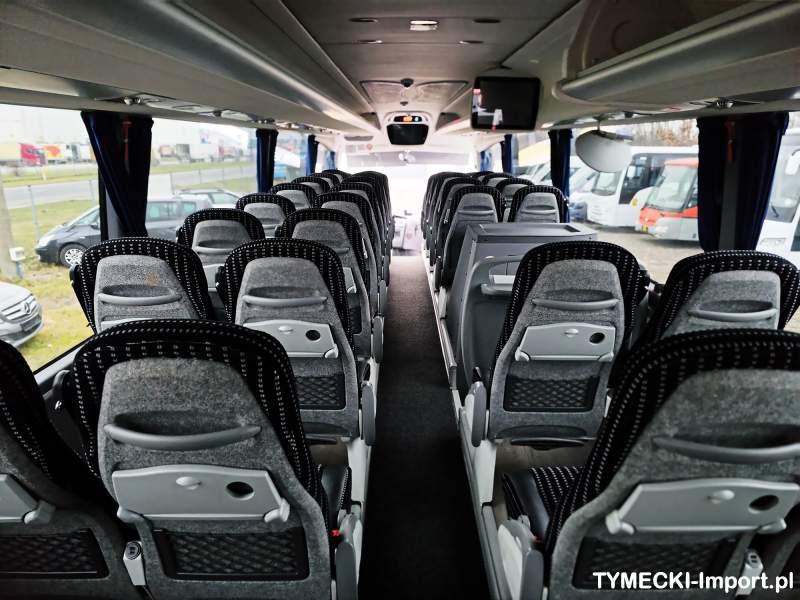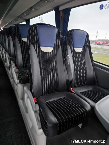 : video, WC, lodówka, kabina sypialna, fotele odchylane, oświetlenie indywidualne, nawiewy dyszowe, siateczki, ABS, ASR, tempomat, retarder, telefon, CD, podnóżki, stoliczki, mikrofon, klimatyzacja, radio, rampa dla inwalidów, sejf, regulacja wysokości nadwozia, centralny zamek, podwójne szyby boczne, wspomaganie kierownicy, elektryczne lusterka, aluminiowe felgi, DVD, ogrzewanie stacjonarne, ESP