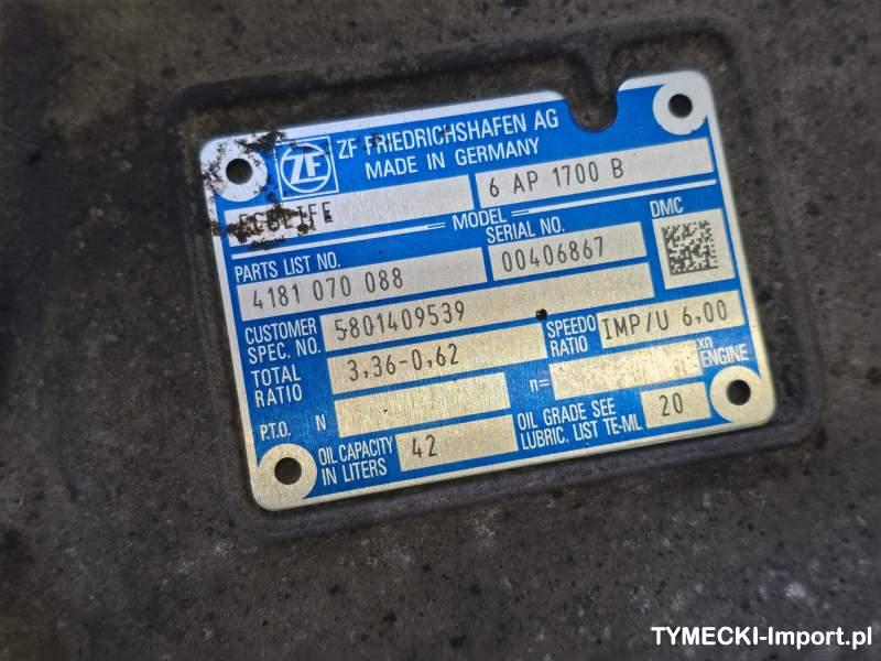 skrzynia biegów ZF Ecolife 6AP1700B pochodzi z autobusu Irisbus Crossway z 2016 roku z przebiegiem 284. 000 km W ofercie posiadamy silniki Iveco Tector 7, Cursor 9 Skrzynie biegów ZF Ecoshift 6S1610BO, 6S1010BO Telmy, filtry DPF Sprzedający: