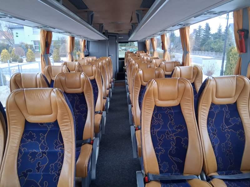 : video, WC, lodówka, fotele odchylane, oświetlenie indywidualne, nawiewy dyszowe, siateczki, ABS, ASR, tempomat, retarder, CD, podnóżki, stoliczki, mikrofon, klimatyzacja, radio, regulacja wysokości nadwozia, centralny zamek, podwójne szyby boczne, wspomaganie kierownicy, elektryczne lusterka, DVD, ogrzewanie stacjonarne, ESP