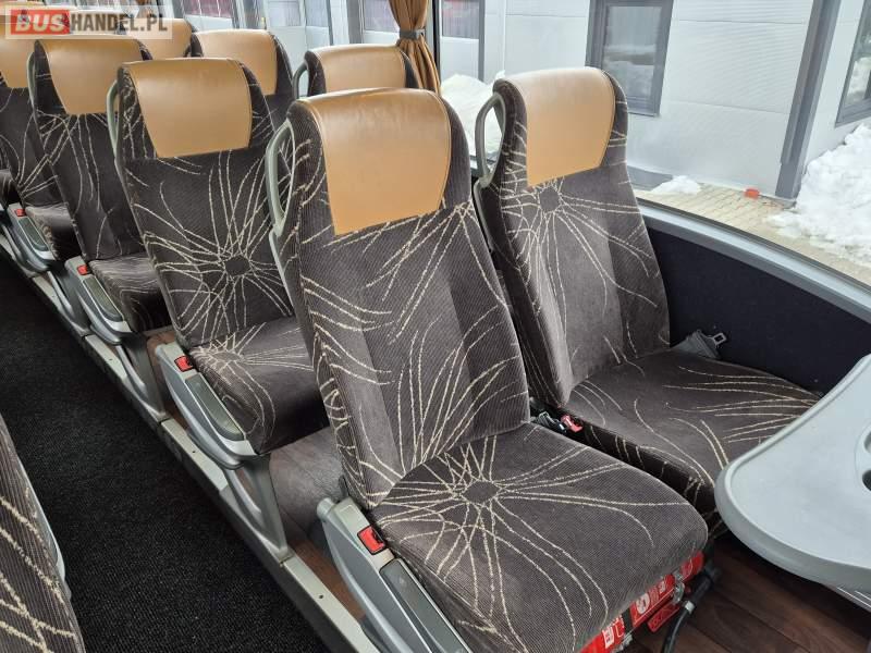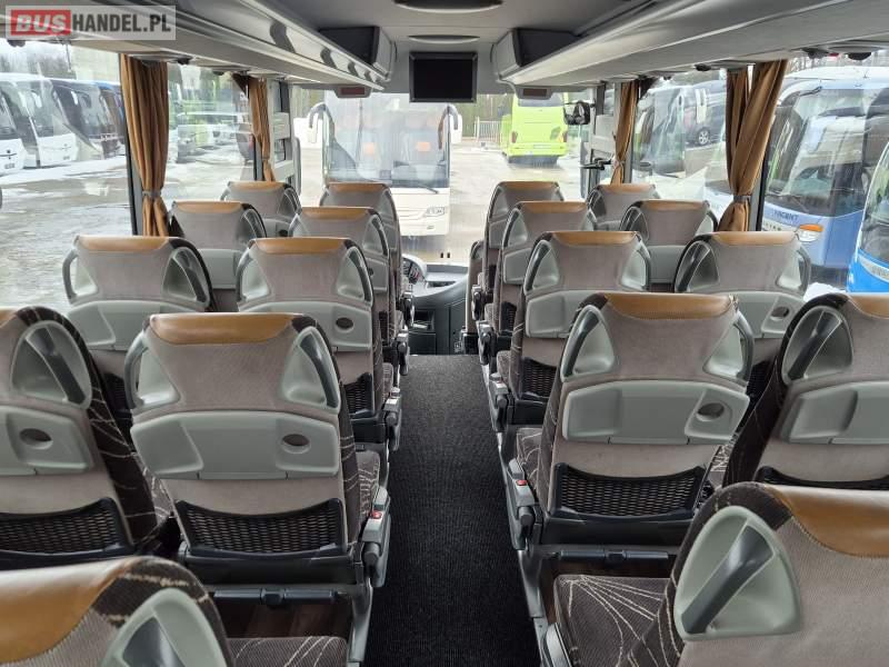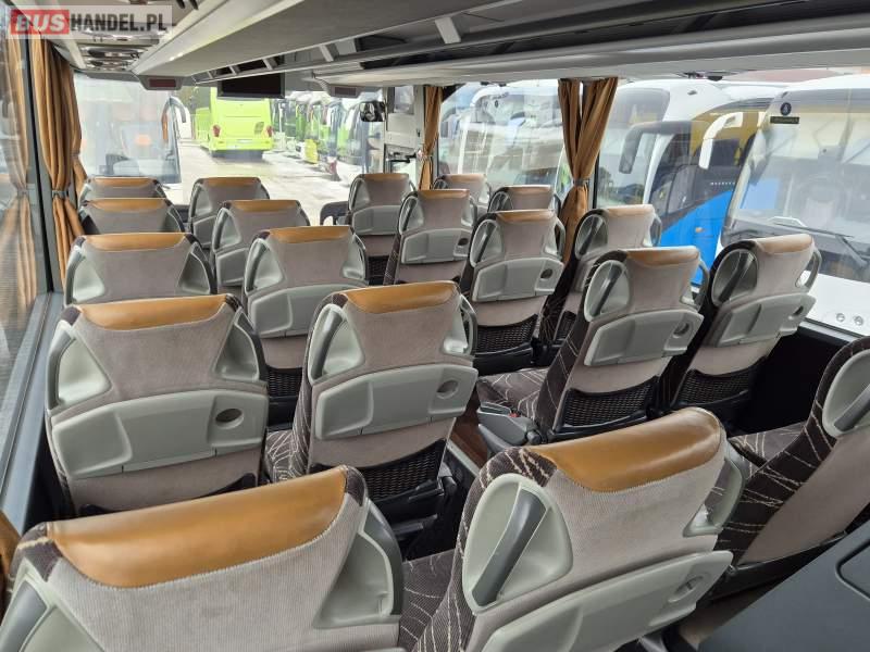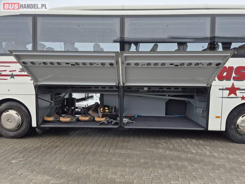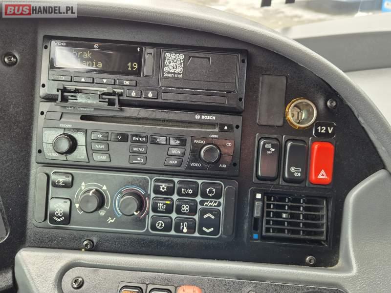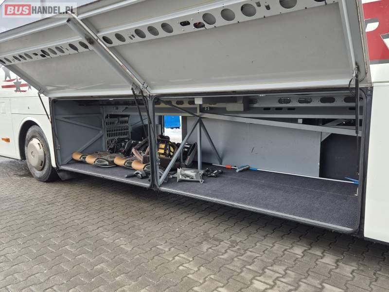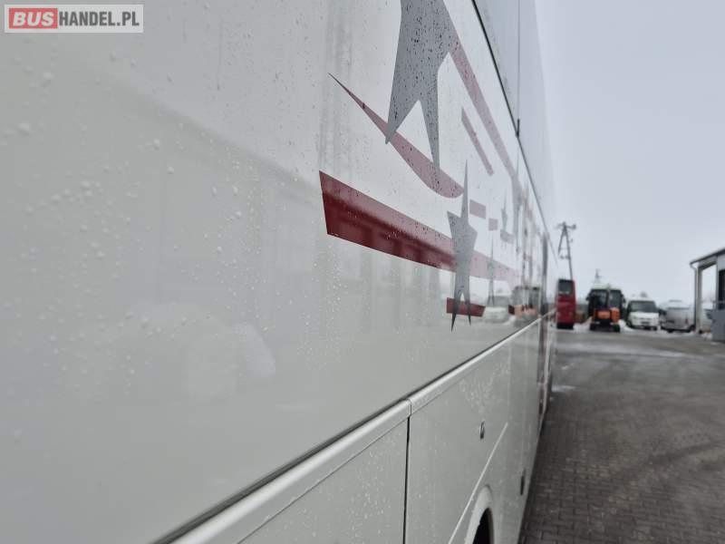 : video, WC, lodówka, caffebar, oświetlenie indywidualne, siateczki, ABS, tempomat, retarder, nawigacja, CD, podnóżki, stoliczki, mikrofon, klimatyzacja, radio, regulacja wysokości nadwozia, centralny zamek, podwójne szyby boczne, wspomaganie kierownicy, elektryczne lusterka, fotele odchylane i rozsuwane, DVD, ogrzewanie stacjonarne
