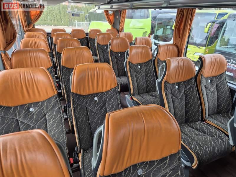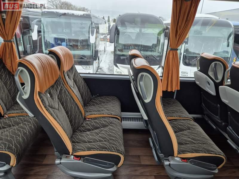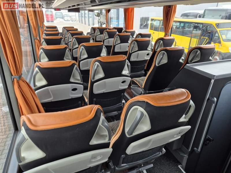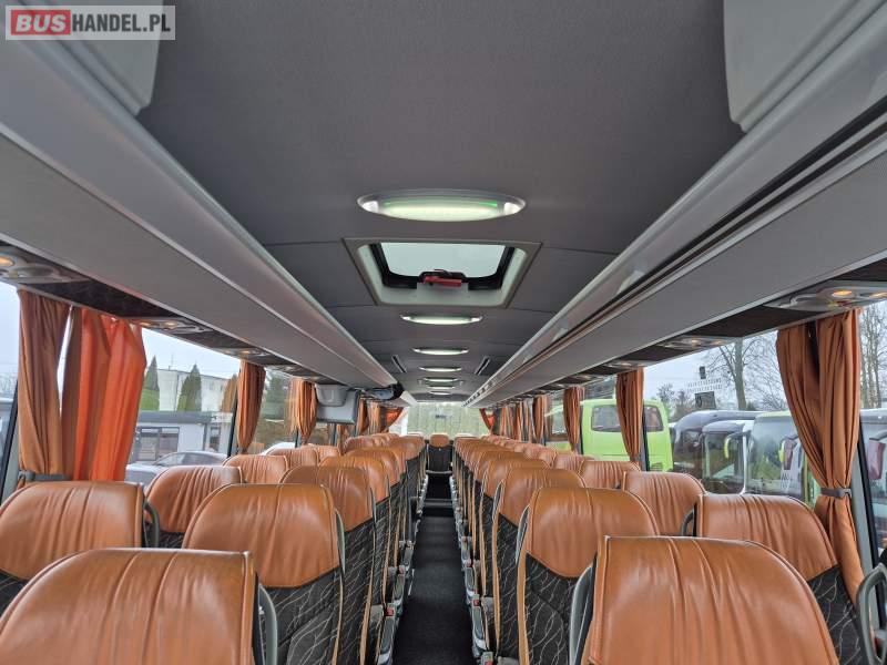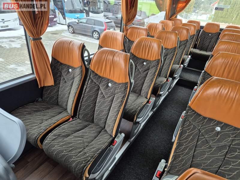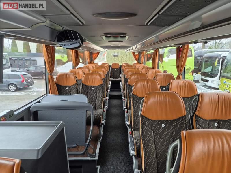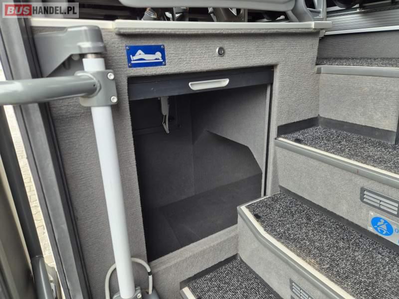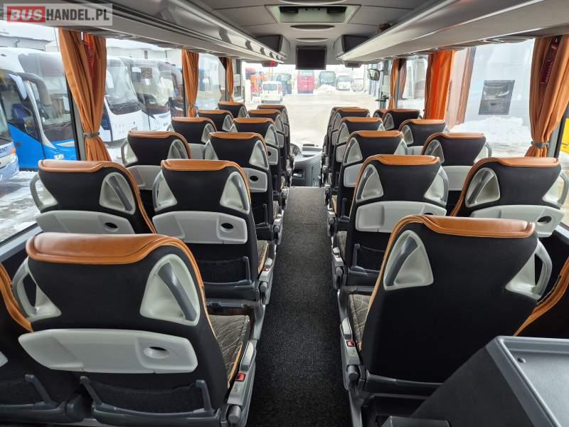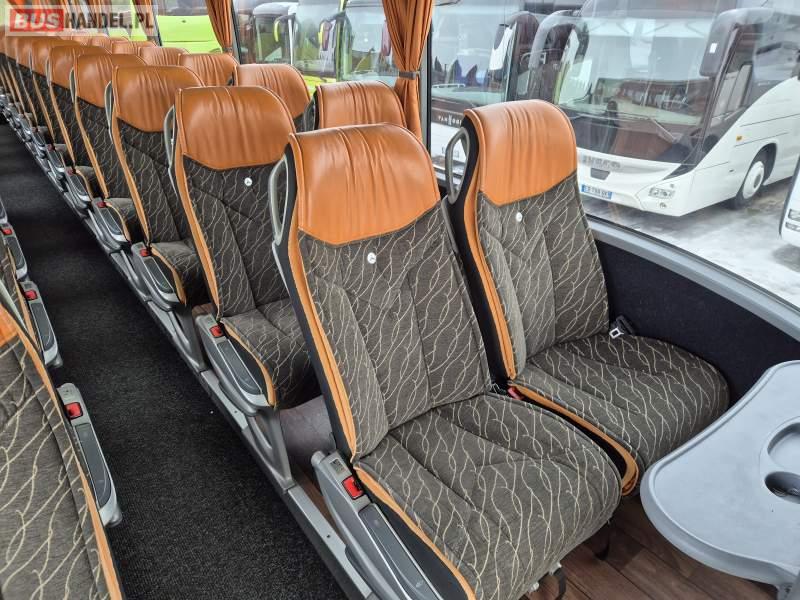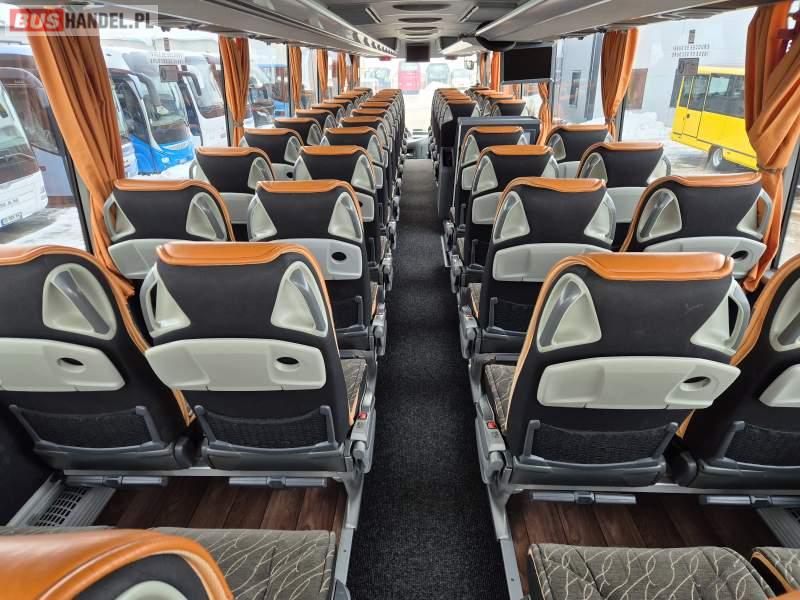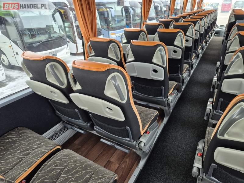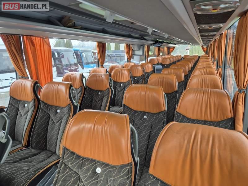 : video, WC, lodówka, kabina sypialna, oświetlenie indywidualne, siateczki, ABS, tempomat, retarder, CD, podnóżki, stoliczki, klimatyzacja, radio, regulacja wysokości nadwozia, centralny zamek, podwójne szyby boczne, wspomaganie kierownicy, elektryczne lusterka, fotele odchylane i rozsuwane, DVD, ogrzewanie stacjonarne