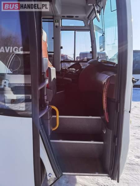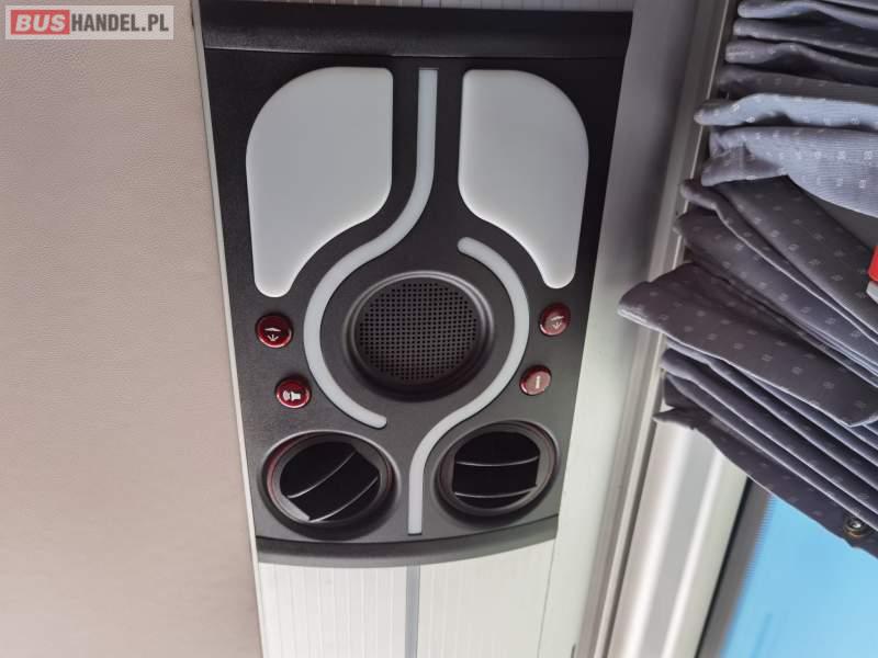 : lodówka, caffebar, fotele odchylane, oświetlenie indywidualne, nawiewy dyszowe, siateczki, ABS, tempomat, retarder, nawigacja, CD, stoliczki, klimatyzacja, radio, regulacja wysokości nadwozia, podwójne szyby boczne, wspomaganie kierownicy, elektryczne lusterka, ogrzewanie stacjonarne, ESP