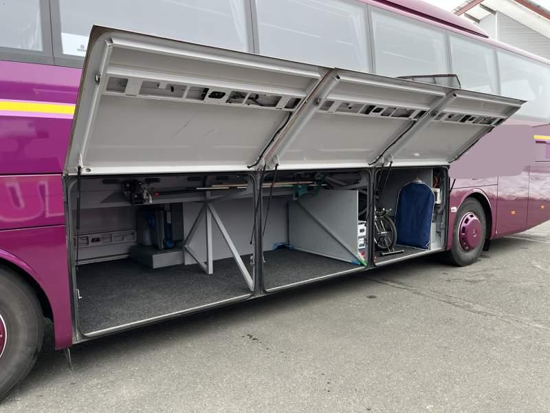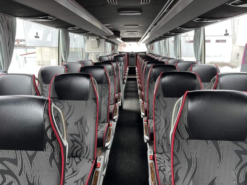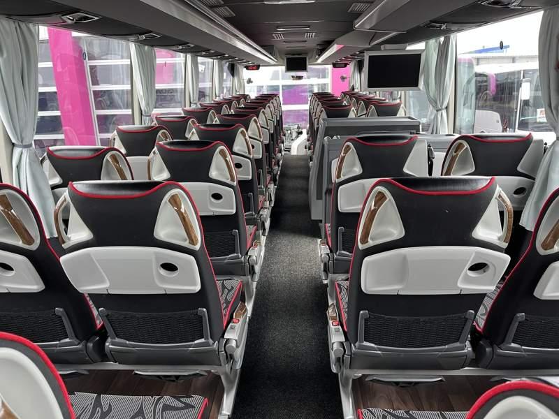 : WC, lodówka, caffebar, kabina sypialna, fotele odchylane, oświetlenie indywidualne, nawiewy dyszowe, siateczki, ABS, ASR, tempomat, retarder, nawigacja, CD, podnóżki, stoliczki, mikrofon, klimatyzacja, radio, regulacja wysokości nadwozia, centralny zamek, podwójne szyby boczne, wspomaganie kierownicy, elektryczne lusterka, fotele odchylane i rozsuwane, DVD, ogrzewanie stacjonarne, ESP