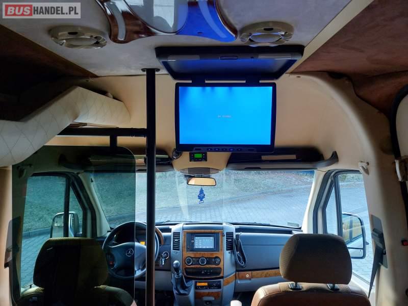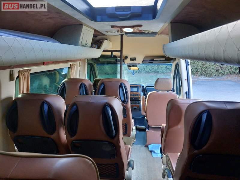 : klimatyzacja, video, oświetlenie indywidualne, nawiewy dyszowe, podnóżki, stoliczki, siateczki, ABS, ASR, tempomat, nawigacja, CD, mikrofon, radio, fotele odchylane i rozsuwane, wyświetlacz matrix, centralny zamek, podwójne szyby boczne, wspomaganie kierownicy, aluminiowe felgi, elektryczne lusterka, ogrzewanie stacjonarne, DVD, hak holowniczy, ESP