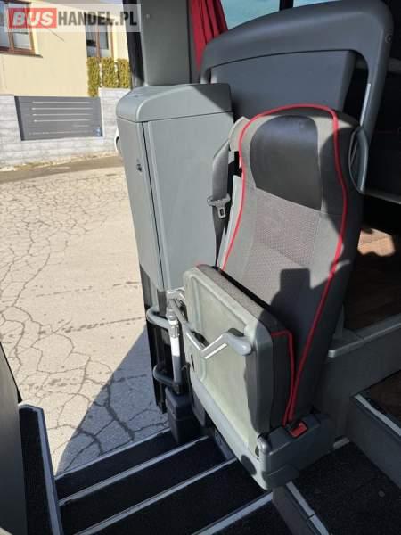 : klimatyzacja, WC, lodówka, oświetlenie indywidualne, nawiewy dyszowe, fotele odchylane, podnóżki, stoliczki, siateczki, ABS, ASR, tempomat, retarder, CD, mikrofon, radio, wyświetlacz matrix, regulacja wysokości nadwozia, centralny zamek, podwójne szyby boczne, wspomaganie kierownicy, elektryczne lusterka, ogrzewanie stacjonarne, DVD, ESP