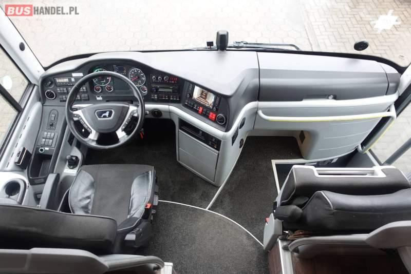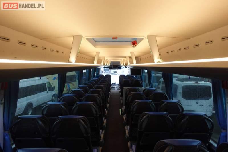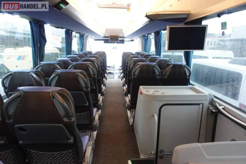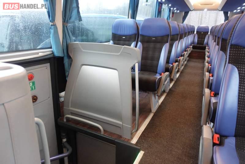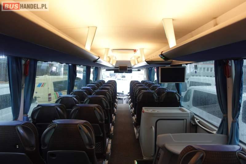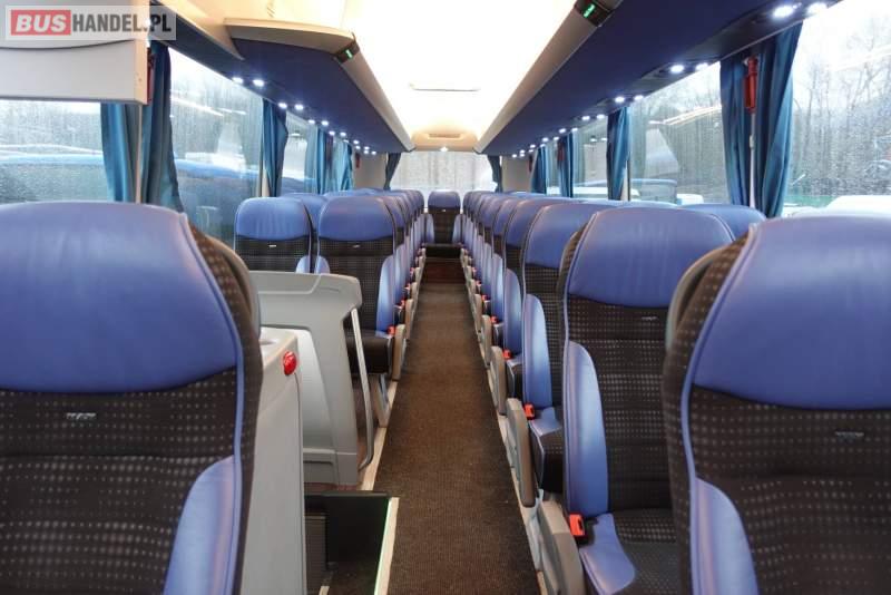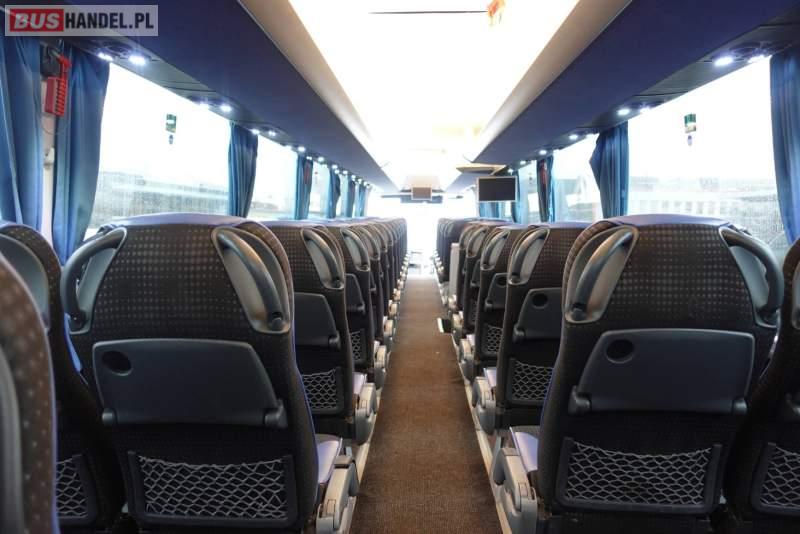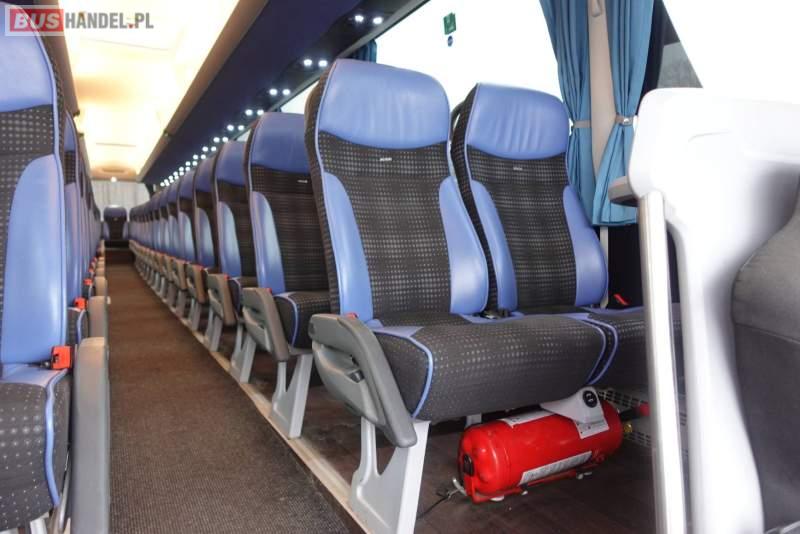 : klimatyzacja, video, WC, lodówka, kabina sypialna, oświetlenie indywidualne, nawiewy dyszowe, fotele odchylane, podnóżki, stoliczki, siateczki, ABS, ASR, tempomat, retarder, nawigacja, CD, mikrofon, radio, fotele odchylane i rozsuwane, regulacja wysokości nadwozia, centralny zamek, podwójne szyby boczne, wspomaganie kierownicy, elektryczne lusterka, ogrzewanie stacjonarne, DVD, ESP