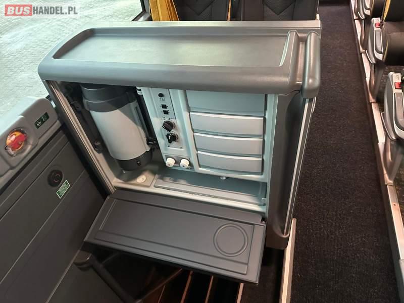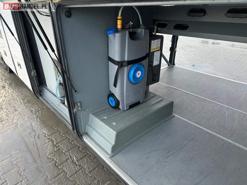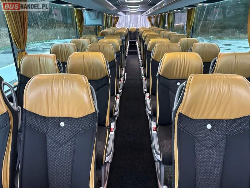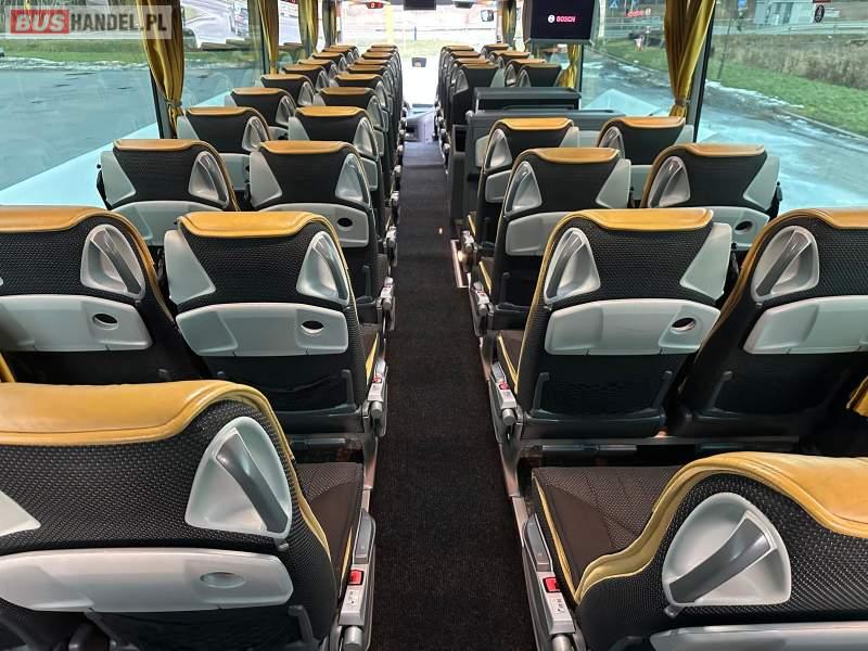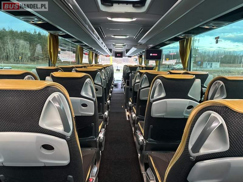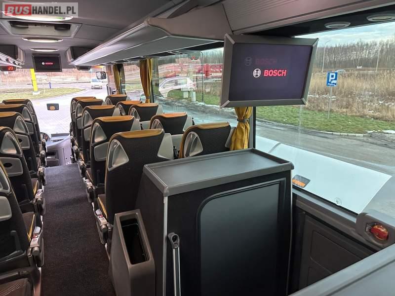 : video, WC, lodówka, caffebar, kabina sypialna, fotele odchylane, oświetlenie indywidualne, nawiewy dyszowe, siateczki, ABS, ASR, tempomat, retarder, telefon, nawigacja, CD, podnóżki, stoliczki, mikrofon, klimatyzacja, radio, wyświetlacz matrix, sejf, regulacja wysokości nadwozia, centralny zamek, podwójne szyby boczne, wspomaganie kierownicy, elektryczne lusterka, fotele odchylane i rozsuwane, DVD, ogrzewanie stacjonarne, hak holowniczy, ESP