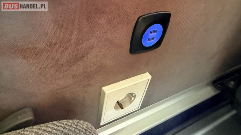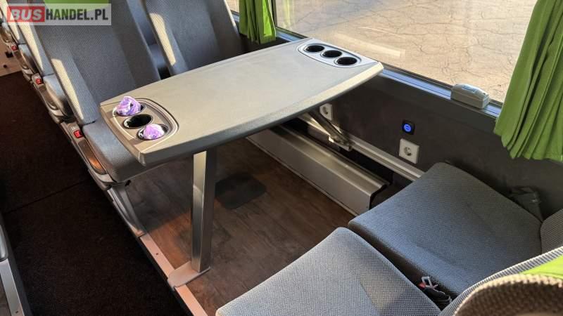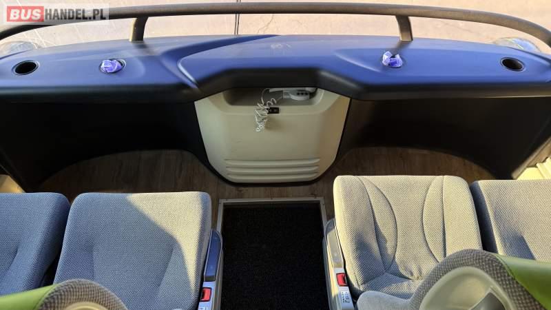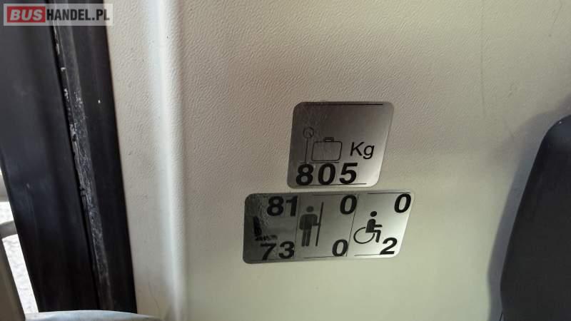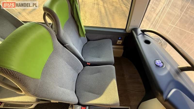 : video, WC, lodówka, caffebar, kabina sypialna, fotele odchylane, oświetlenie indywidualne, nawiewy dyszowe, siateczki, ABS, ASR, tempomat, retarder, telefon, nawigacja, CD, podnóżki, stoliczki, mikrofon, klimatyzacja, radio, wyświetlacz matrix, rampa dla inwalidów, sejf, regulacja wysokości nadwozia, centralny zamek, podwójne szyby boczne, wspomaganie kierownicy, elektryczne lusterka, aluminiowe felgi, DVD, ogrzewanie stacjonarne, ESP