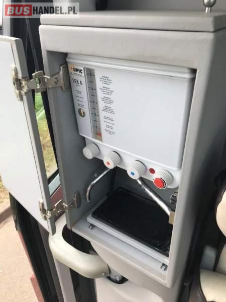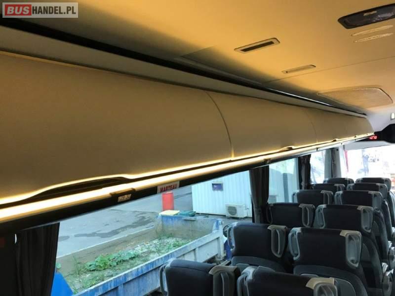 : video, WC, lodówka, kabina sypialna, fotele odchylane, oświetlenie indywidualne, nawiewy dyszowe, ABS, ASR, tempomat, retarder, CD, podnóżki, mikrofon, klimatyzacja, radio, regulacja wysokości nadwozia, centralny zamek, podwójne szyby boczne, wspomaganie kierownicy, elektryczne lusterka, DVD, ogrzewanie stacjonarne