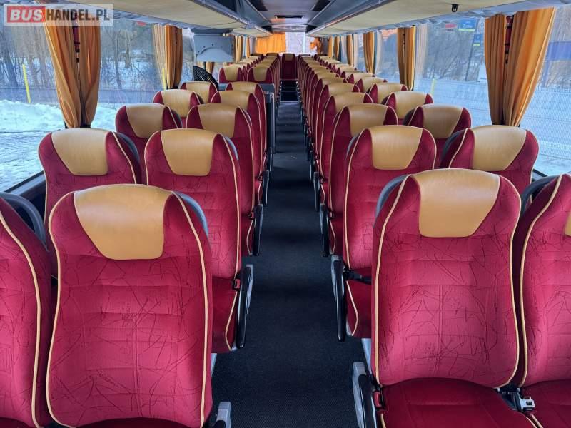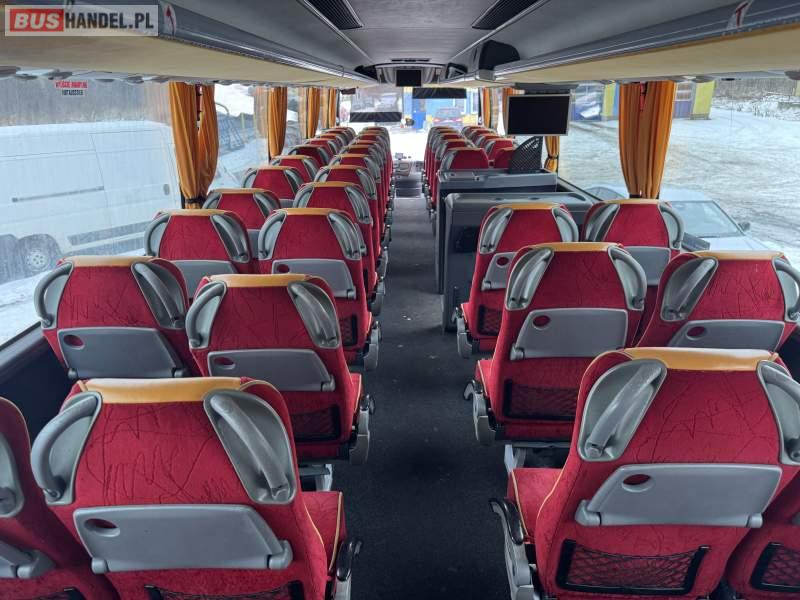 : klimatyzacja, video, WC, lodówka, caffebar, kabina sypialna, oświetlenie indywidualne, nawiewy dyszowe, fotele odchylane, podnóżki, stoliczki, siateczki, ABS, ASR, tempomat, retarder, telefon, nawigacja, CD, mikrofon, radio, fotele odchylane i rozsuwane, rampa dla inwalidów, regulacja wysokości nadwozia, podwójne szyby boczne, wspomaganie kierownicy, elektryczne lusterka, ogrzewanie stacjonarne, DVD, hak holowniczy, ESP