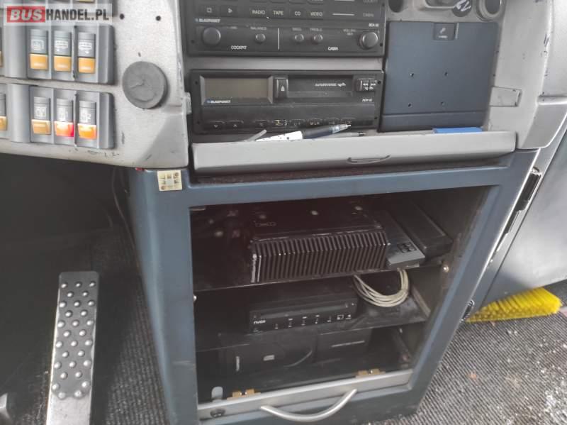 : video, WC, lodówka, caffebar, kabina sypialna, fotele odchylane, oświetlenie indywidualne, nawiewy dyszowe, siateczki, ABS, ASR, tempomat, retarder, telefon, nawigacja, CD, podnóżki, stoliczki, mikrofon, klimatyzacja, radio, sejf, regulacja wysokości nadwozia, centralny zamek, podwójne szyby boczne, wspomaganie kierownicy, elektryczne lusterka, fotele odchylane i rozsuwane, DVD, ogrzewanie stacjonarne, ESP