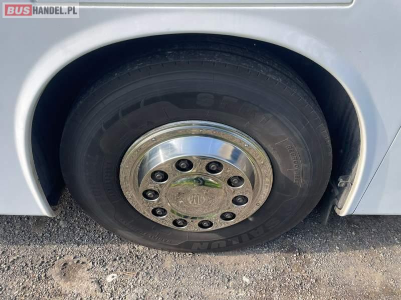 : video, WC, lodówka, caffebar, kabina sypialna, fotele odchylane, oświetlenie indywidualne, siateczki, ABS, ASR, retarder, telefon, CD, podnóżki, stoliczki, mikrofon, klimatyzacja, radio, regulacja wysokości nadwozia, centralny zamek, podwójne szyby boczne, wspomaganie kierownicy, elektryczne lusterka, fotele odchylane i rozsuwane, DVD, ogrzewanie stacjonarne, ESP