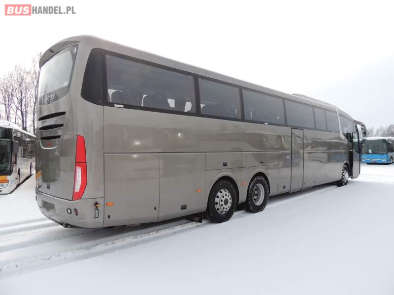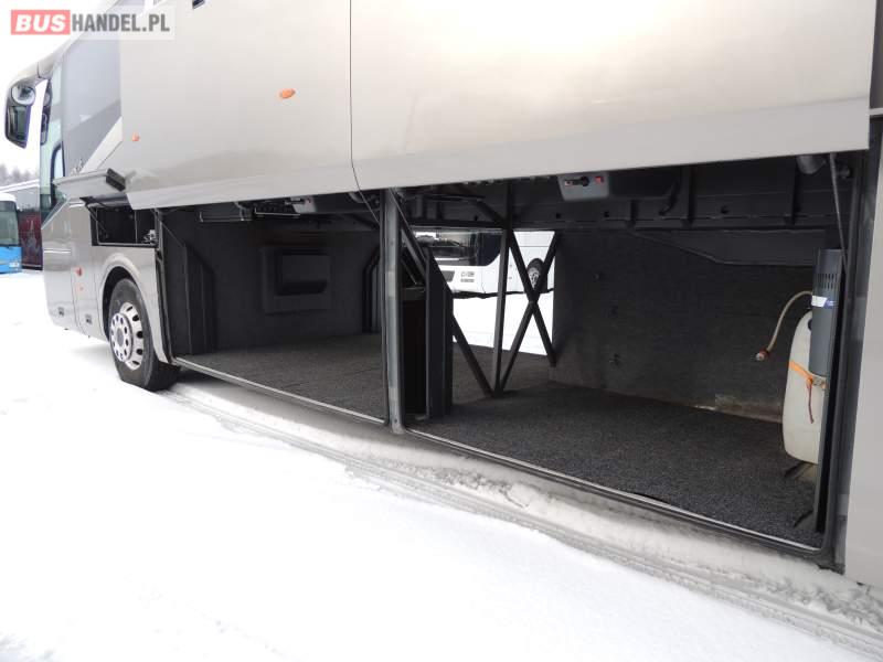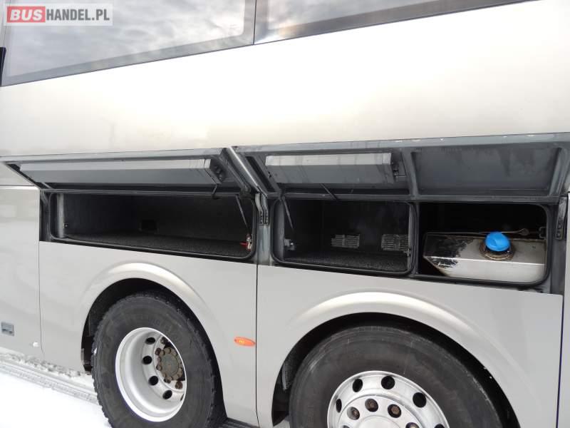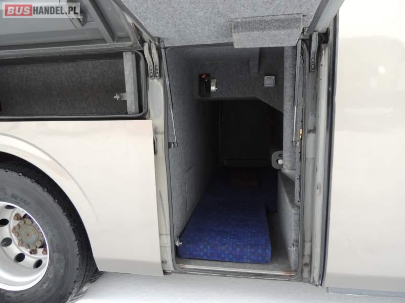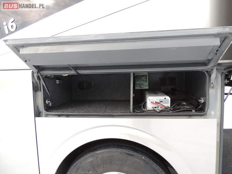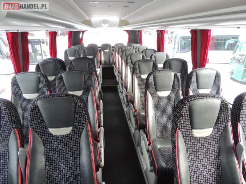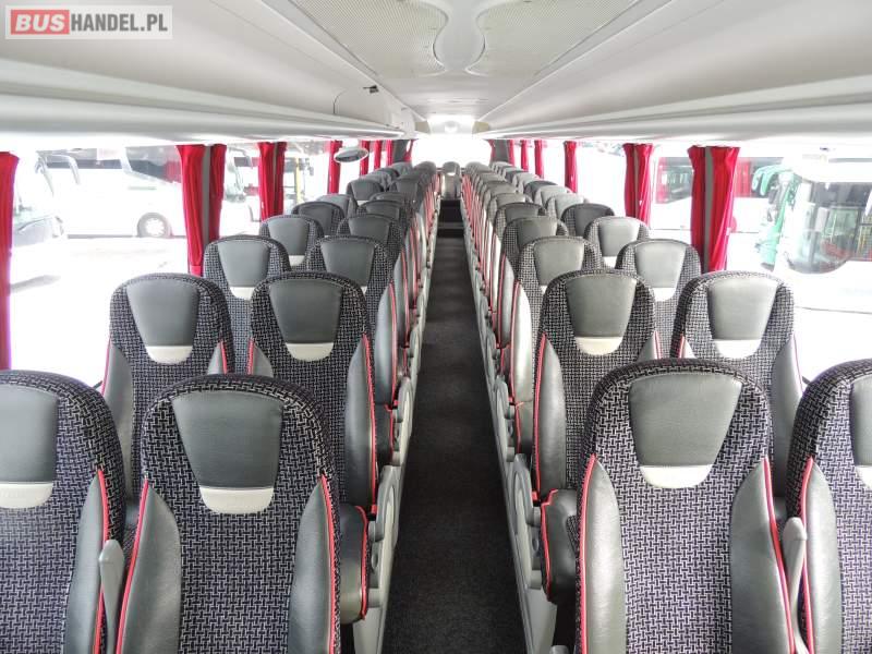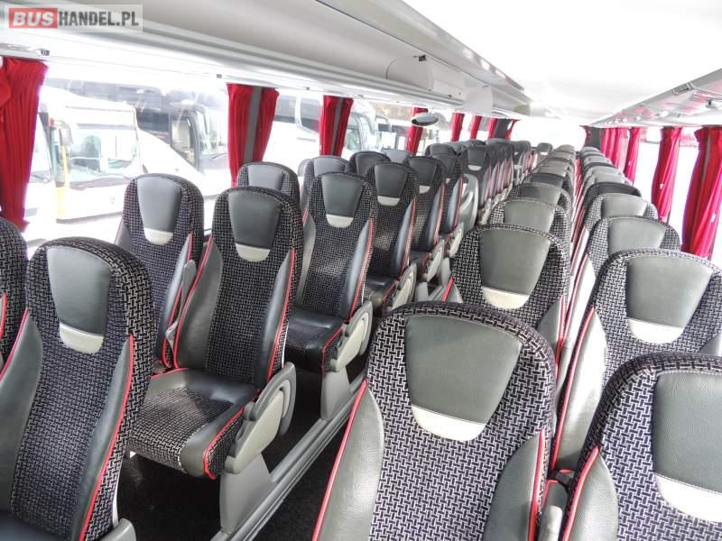: video, WC, lodówka, caffebar, kabina sypialna, oświetlenie indywidualne, nawiewy dyszowe, siateczki, ABS, ASR, tempomat, retarder, CD, stoliczki, mikrofon, klimatyzacja, radio, regulacja wysokości nadwozia, centralny zamek, podwójne szyby boczne, wspomaganie kierownicy, elektryczne lusterka, aluminiowe felgi, fotele odchylane i rozsuwane, DVD, ogrzewanie stacjonarne, ESP