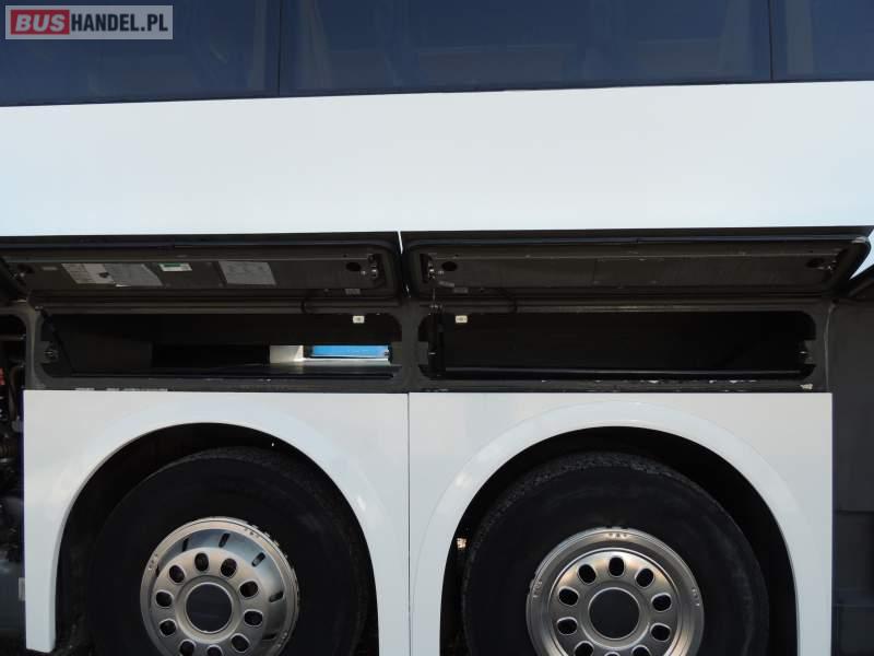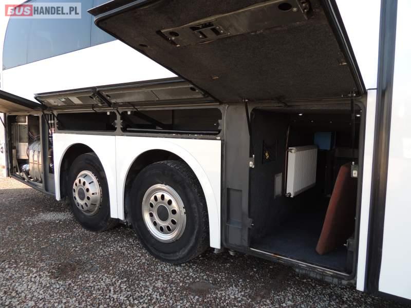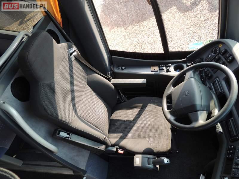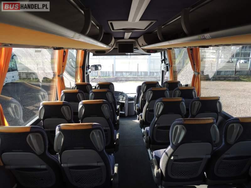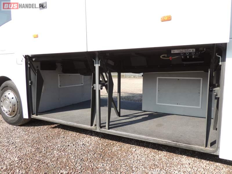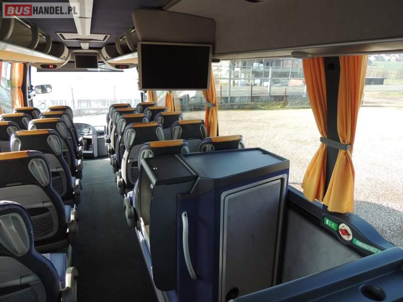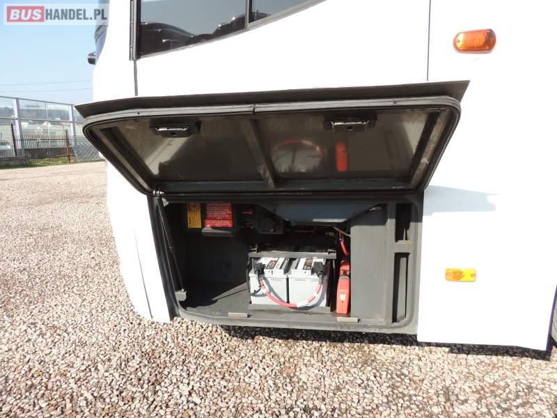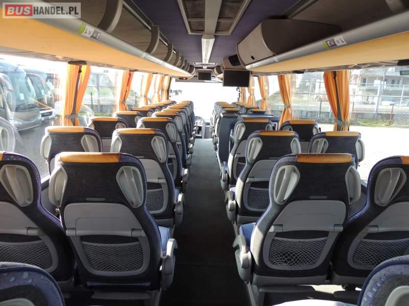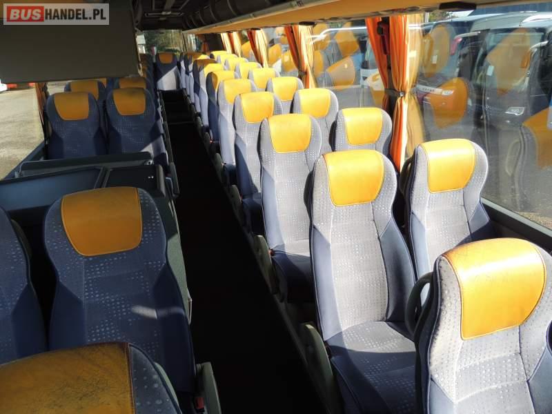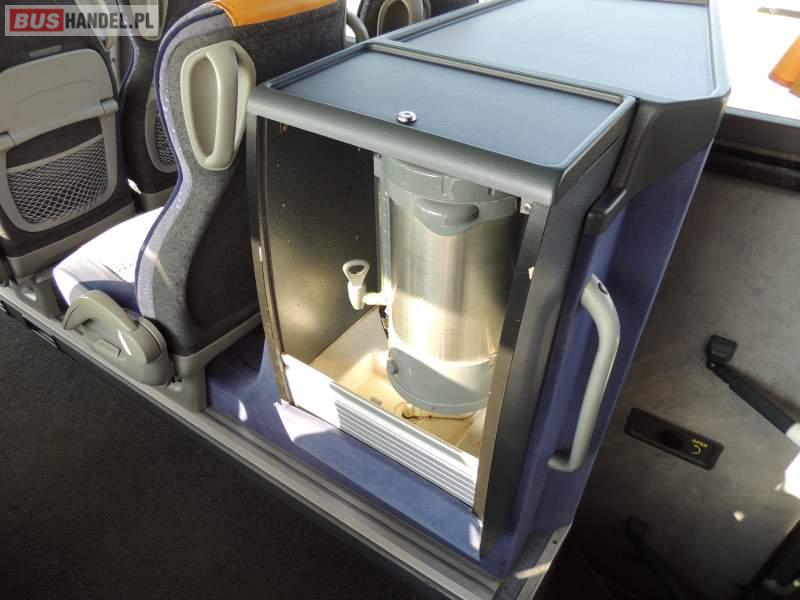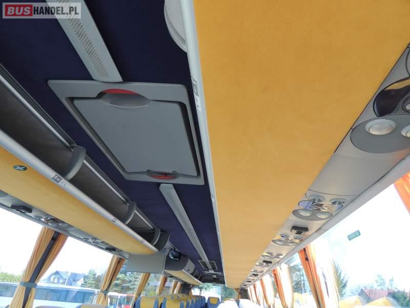 : video, WC, lodówka, caffebar, kabina sypialna, oświetlenie indywidualne, nawiewy dyszowe, siateczki, ABS, ASR, tempomat, retarder, CD, podnóżki, stoliczki, mikrofon, klimatyzacja, radio, regulacja wysokości nadwozia, centralny zamek, podwójne szyby boczne, wspomaganie kierownicy, elektryczne lusterka, fotele odchylane i rozsuwane, DVD, ogrzewanie stacjonarne, ESP
