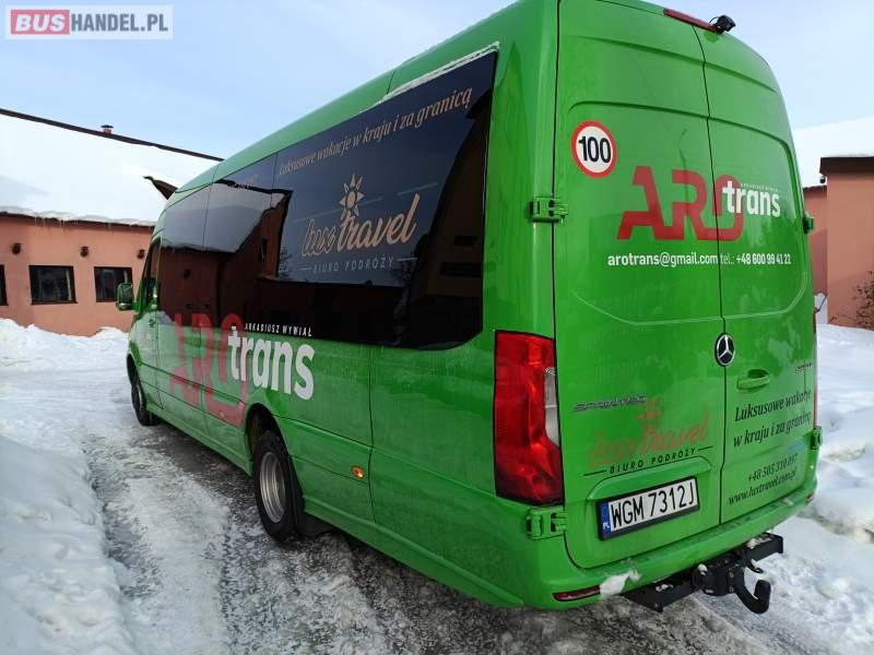 witam witam Mercedes Sprinter 519, 24 miejsca Rok produkcji 2023 Skrzynia automatyczna Moc 190 km Przebieg 144 tys km Autobus pierwszy własciciel , stan idelany CENA 333 000 + VAT Wyposażenie: -zabudowa Mercus -tacho II generacji -hak holowniczy -pogłebiony bagaznik -nowe opony zimowe -szyby panorama -indywidulane nawiewy -indywidualne usb, gniazda 230 V -fotele rozsuwane i rozkładane , podłokietniki -fotel pilota -mikrofon -wymieniony olej i filtry -klimatyzacja dachowa Sprzedający: