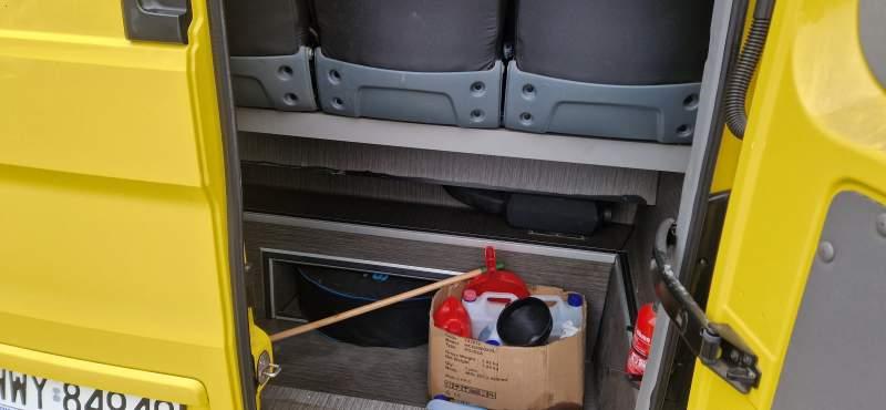 : oświetlenie indywidualne, nawiewy dyszowe, siateczki, ABS, ASR, tempomat, nawigacja, CD, mikrofon, klimatyzacja, radio, centralny zamek, podwójne szyby boczne, wspomaganie kierownicy, elektryczne lusterka, fotele odchylane i rozsuwane, DVD, ogrzewanie stacjonarne, hak holowniczy, ESP