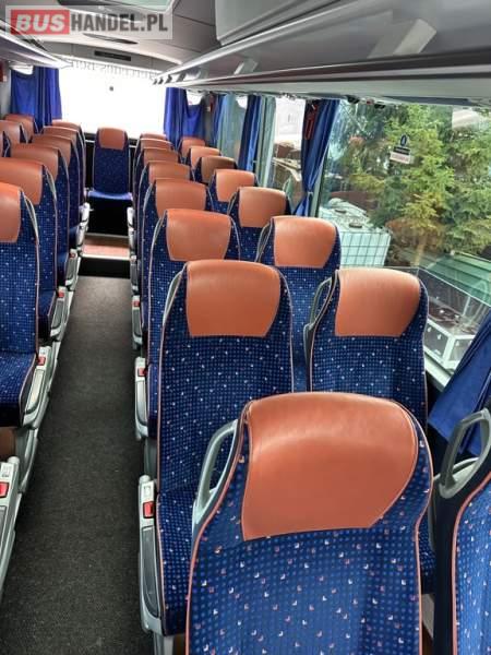 : WC, lodówka, caffebar, kabina sypialna, fotele odchylane, oświetlenie indywidualne, nawiewy dyszowe, ABS, ASR, tempomat, retarder, CD, podnóżki, stoliczki, mikrofon, klimatyzacja, radio, centralny zamek, podwójne szyby boczne, elektryczne lusterka, fotele odchylane i rozsuwane, DVD, ESP