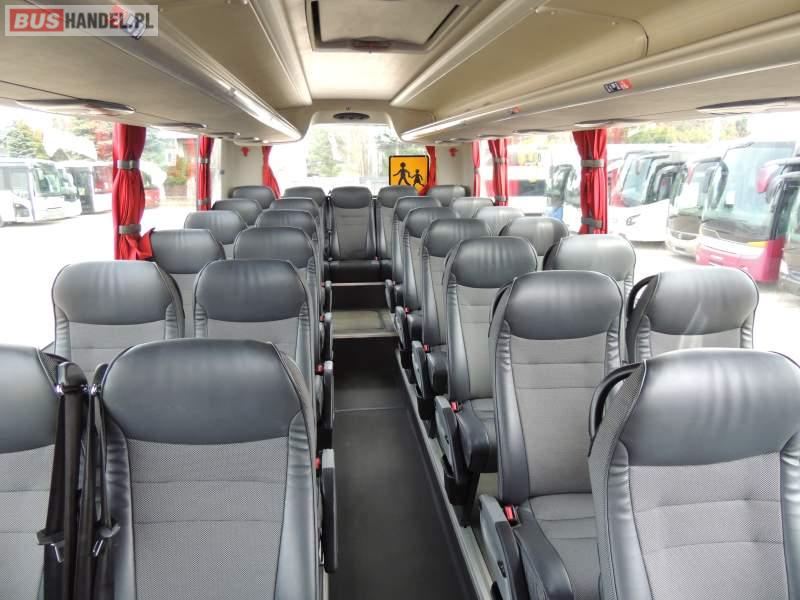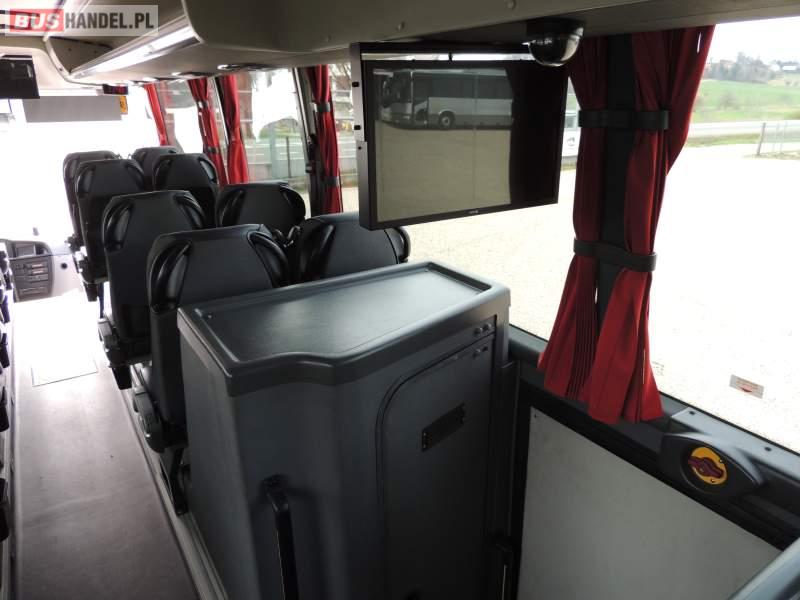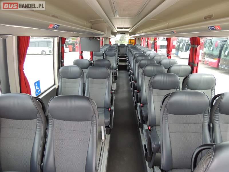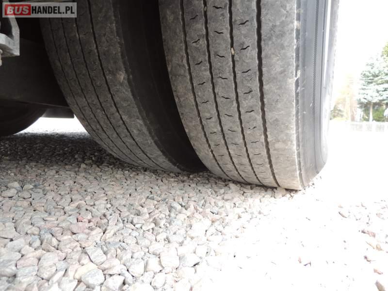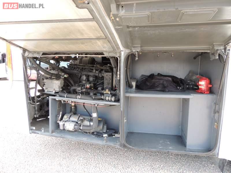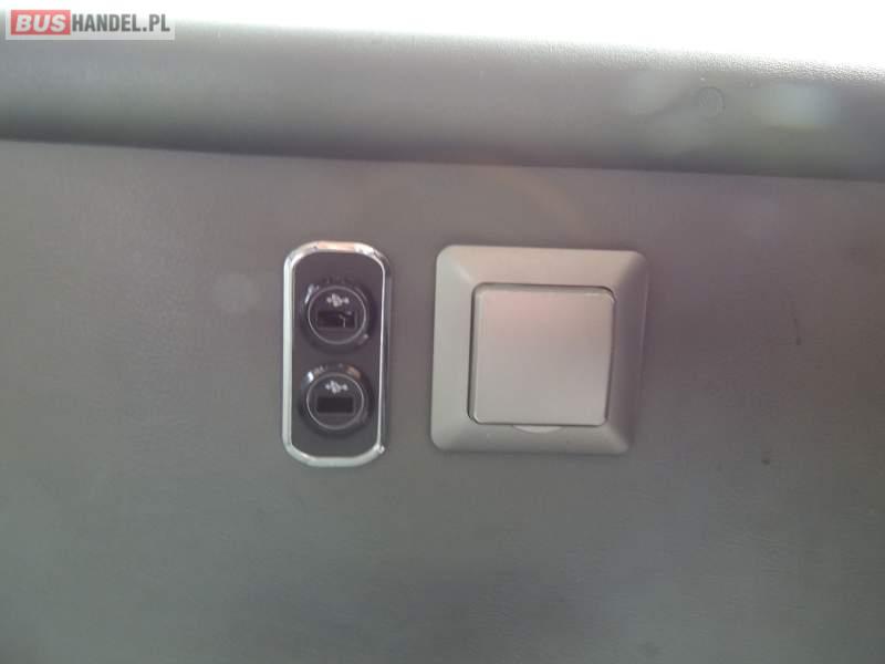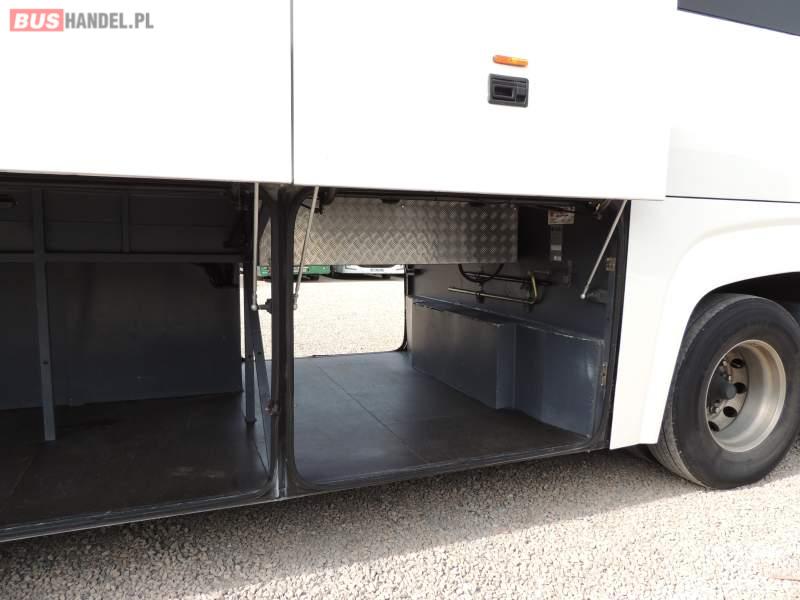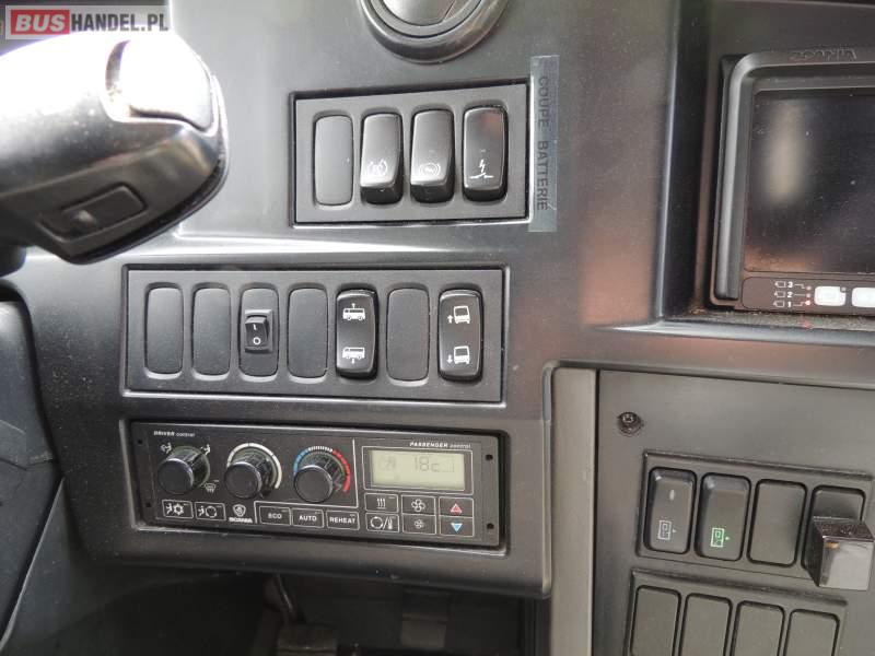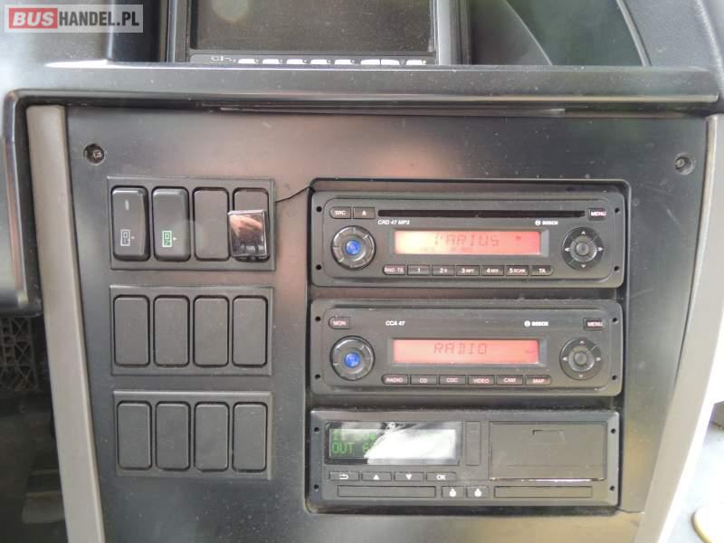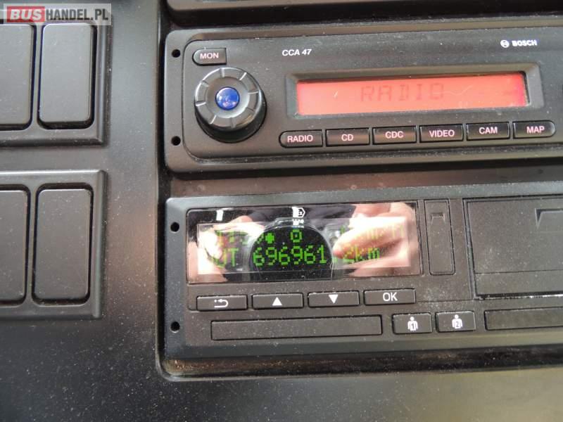 : klimatyzacja, video, WC, lodówka, oświetlenie indywidualne, nawiewy dyszowe, ABS, ASR, tempomat, retarder, CD, radio, fotele odchylane i rozsuwane, rampa dla inwalidów, regulacja wysokości nadwozia, centralny zamek, podwójne szyby boczne, wspomaganie kierownicy, elektryczne lusterka, ogrzewanie stacjonarne, DVD, ESP