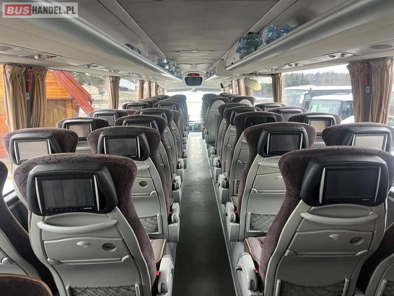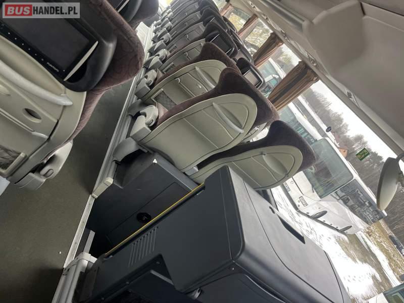: lodówka, caffebar, kabina sypialna, fotele odchylane, oświetlenie indywidualne, nawiewy dyszowe, siateczki, ABS, ASR, tempomat, retarder, podnóżki, stoliczki, mikrofon, klimatyzacja, radio, regulacja wysokości nadwozia, centralny zamek, podwójne szyby boczne, wspomaganie kierownicy, elektryczne lusterka, fotele odchylane i rozsuwane, ogrzewanie stacjonarne, ESP