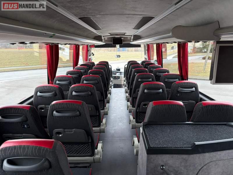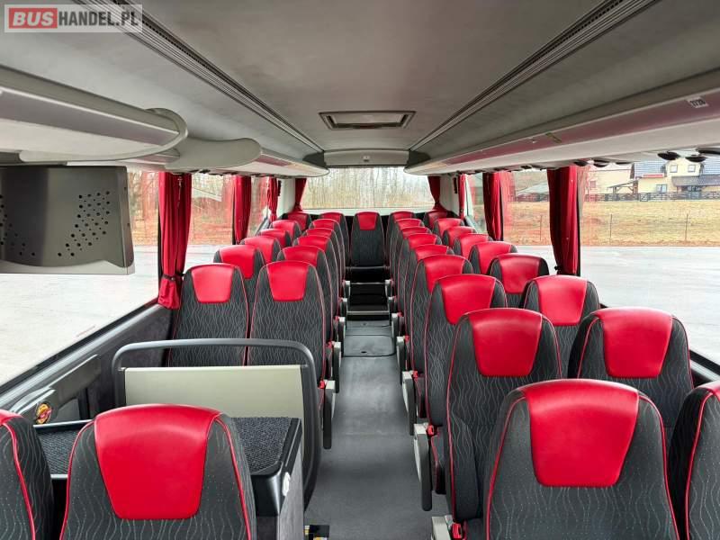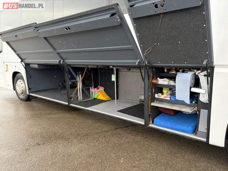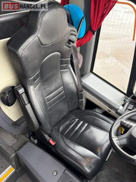 : klimatyzacja, WC, lodówka, caffebar, kabina sypialna, oświetlenie indywidualne, nawiewy dyszowe, podnóżki, stoliczki, siateczki, ABS, ASR, tempomat, retarder, CD, mikrofon, radio, fotele odchylane i rozsuwane, sejf, regulacja wysokości nadwozia, podwójne szyby boczne, wspomaganie kierownicy, elektryczne lusterka, ogrzewanie stacjonarne, DVD, ESP
