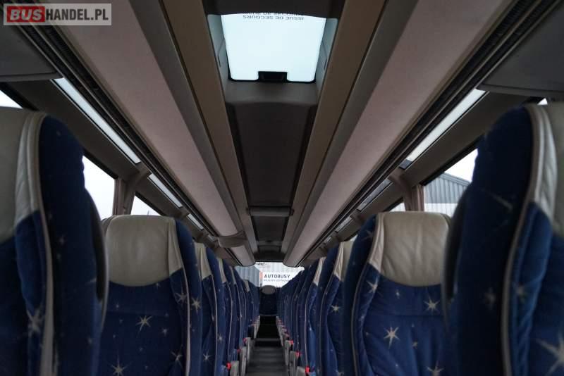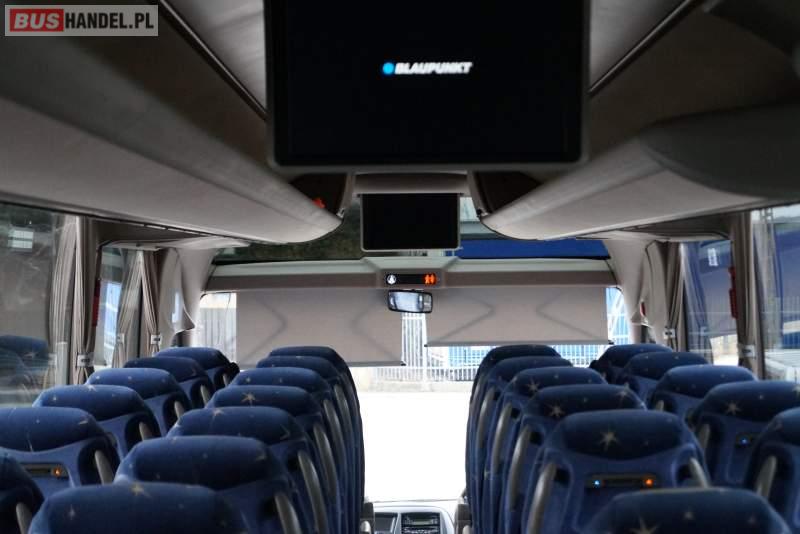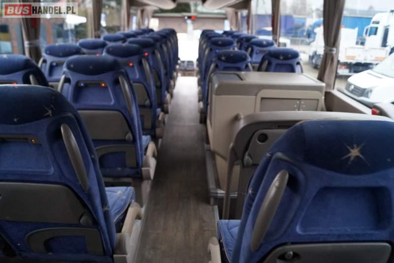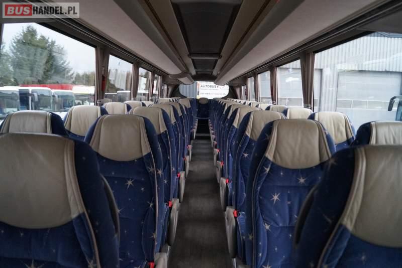 : WC, lodówka, fotele odchylane, oświetlenie indywidualne, nawiewy dyszowe, ABS, ASR, tempomat, retarder, nawigacja, CD, podnóżki, stoliczki, mikrofon, klimatyzacja, radio, regulacja wysokości nadwozia, centralny zamek, podwójne szyby boczne, wspomaganie kierownicy, elektryczne lusterka, DVD, ogrzewanie stacjonarne