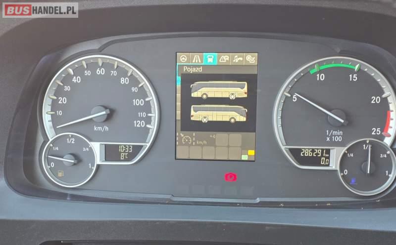 : WC, lodówka, fotele odchylane, oświetlenie indywidualne, nawiewy dyszowe, siateczki, ABS, ASR, tempomat, retarder, nawigacja, CD, podnóżki, stoliczki, mikrofon, klimatyzacja, radio, wyświetlacz matrix, sejf, regulacja wysokości nadwozia, centralny zamek, podwójne szyby boczne, wspomaganie kierownicy, elektryczne lusterka, DVD, ogrzewanie stacjonarne, ESP
