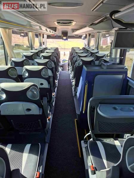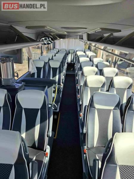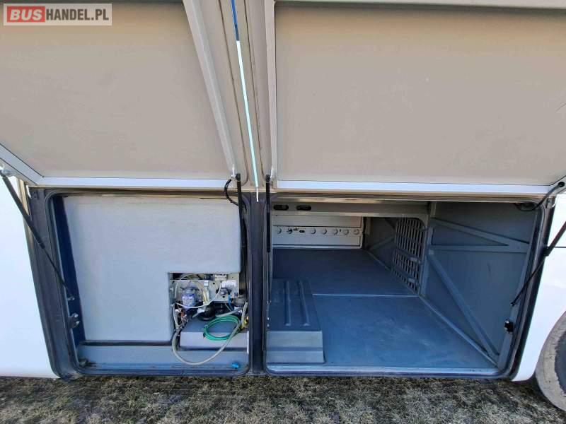 : WC, lodówka, caffebar, kabina sypialna, oświetlenie indywidualne, nawiewy dyszowe, ABS, ASR, retarder, nawigacja, CD, podnóżki, mikrofon, klimatyzacja, radio, sejf, regulacja wysokości nadwozia, centralny zamek, podwójne szyby boczne, elektryczne lusterka, fotele odchylane i rozsuwane, DVD, ogrzewanie stacjonarne, ESP