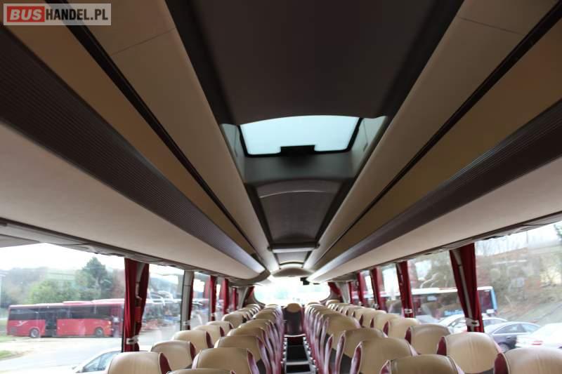 : WC, lodówka, caffebar, kabina sypialna, oświetlenie indywidualne, ABS, ASR, tempomat, retarder, CD, podnóżki, mikrofon, klimatyzacja, radio, regulacja wysokości nadwozia, centralny zamek, podwójne szyby boczne, wspomaganie kierownicy, elektryczne lusterka, fotele odchylane i rozsuwane, DVD, ogrzewanie stacjonarne, ESP