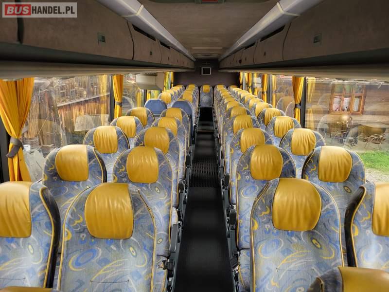 : video, WC, lodówka, kabina sypialna, fotele odchylane, oświetlenie indywidualne, nawiewy dyszowe, siateczki, ABS, ASR, tempomat, retarder, nawigacja, CD, podnóżki, stoliczki, mikrofon, klimatyzacja, radio, wyświetlacz matrix, regulacja wysokości nadwozia, centralny zamek, wspomaganie kierownicy, elektryczne lusterka, aluminiowe felgi, DVD, ogrzewanie stacjonarne, ESP